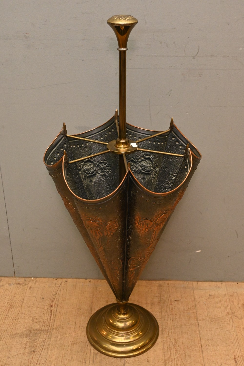 A FRENCH COPPER AND BRASS BASED UMBRELLA FORM UMBRELLA STAND (90H X 39D CM) (LEONARD JOEL DELIVERY SIZE: LARGE)