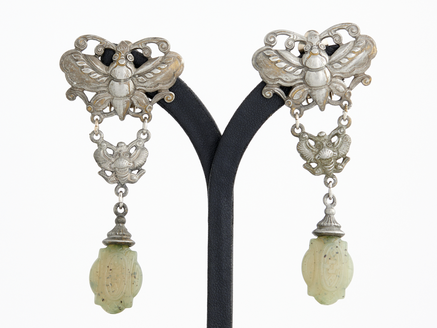 BEN AMUN, A PAIR OF ANTIQUE STYLE EARRINGS IN SILVER TONE METAL, TO CLIP ON FITTINGS