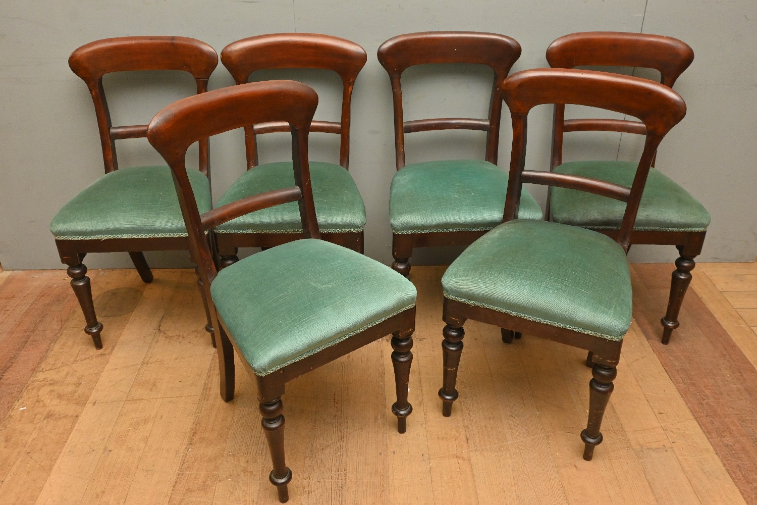 A SET OF SIX VICTORIAN AUSTRALIAN CEDAR SPADE-BACK DINING CHAIRS (A/F) (89H X 45W X 45D CM) (LEONARD JOEL DELIVERY SIZE: X-LARGE)
