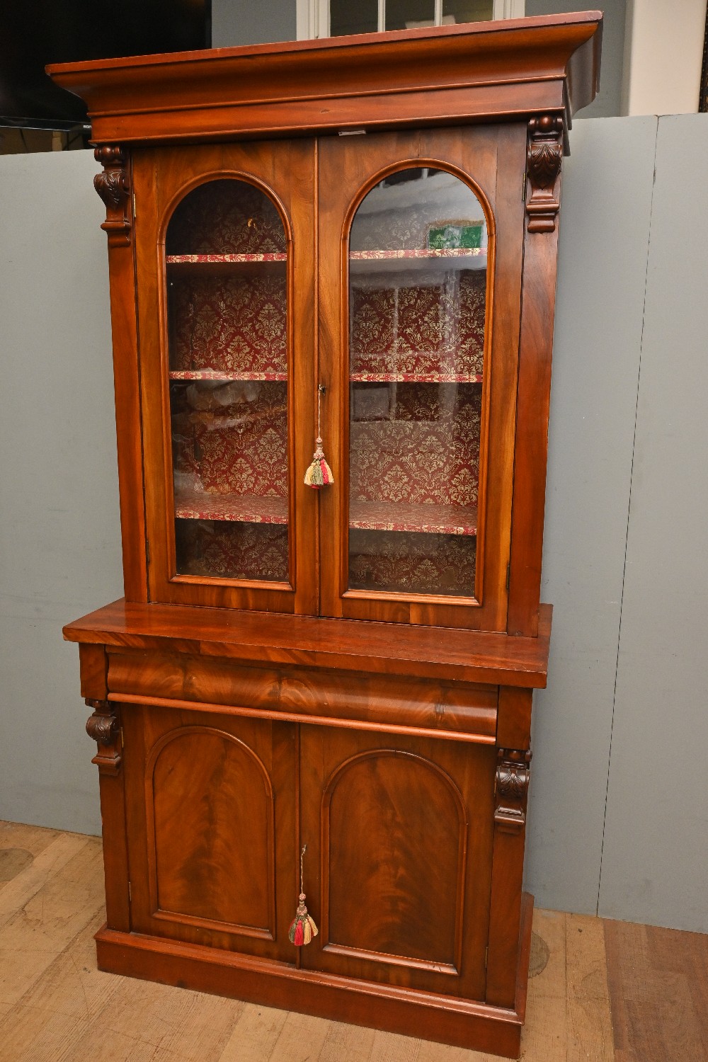 A VICTORIAN MAHOGANY AND GLAZED BOOK-CASE CABINET - KEYS IN OFFICE (A/F) (214H X 107W X 52D CM) (PLEASE NOTE THIS HEAVY ITEM MUST BE REMOVED BY CARRIERS AT THE CUSTOMER'S EXPENSE. LEONARD JOEL STAFF CANNOT ASSIST CARRYING THIS ITEM) (X-LARGE ITEM)
