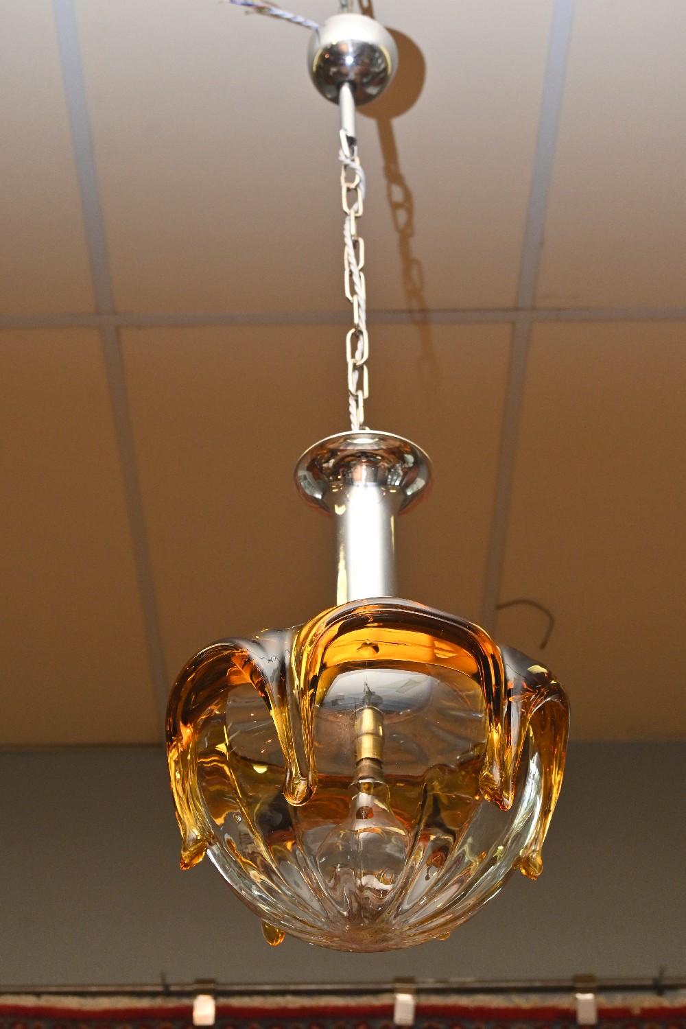 AN AMBER & CLEAR GLASS PENDANT LIGHT FROM OBER, AUSTRIA (100H X 30D CM) (LEONARD JOEL DELIVERY SIZE: LARGE)