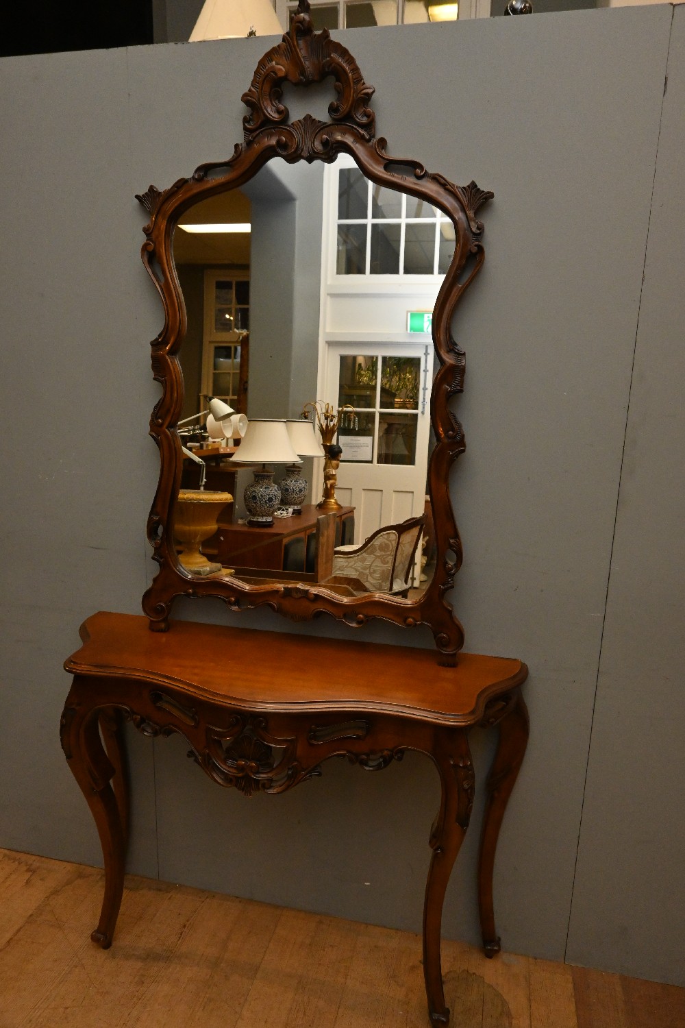 AN ITALIAN LOUIS XV STYLE CONSOLE TBALE AND MATCHING MIRROR (A/F) (CONSOLE 80H X 110W X 34D CM) (LEONARD JOEL DELIVERY SIZE: X-LARGE)