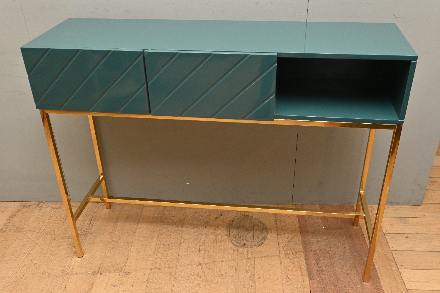 A CONTEMPORARY LAQUERED TWO DRAWER HALL CONSOLE (93H X 120W X 36D CM) (LEONARD JOEL DELIVERY SIZE: X-LARGE)