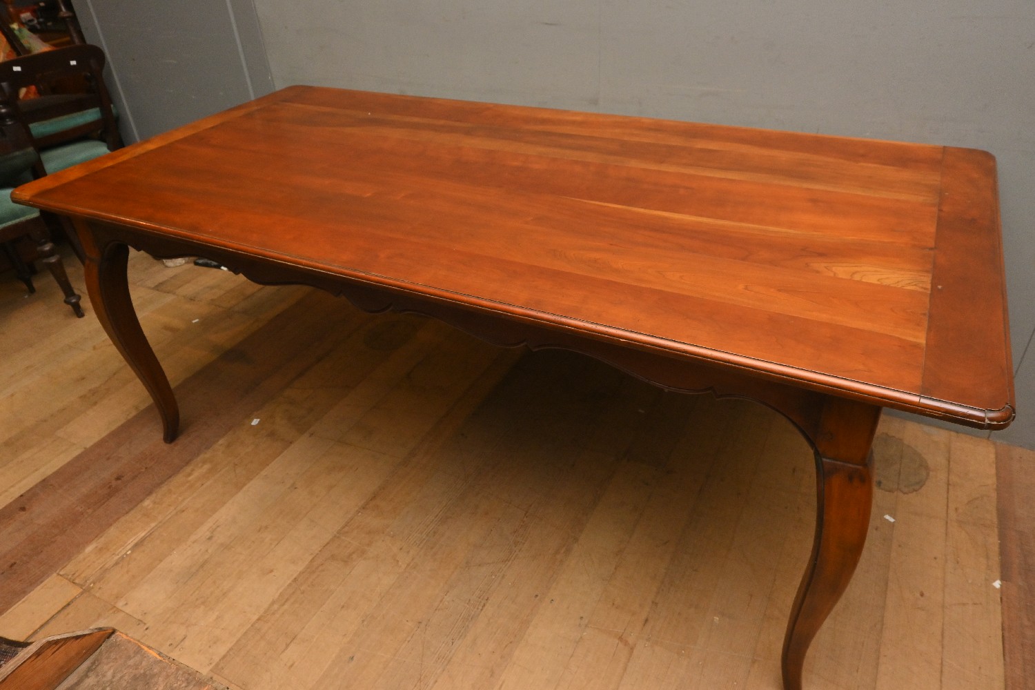 A FRENCH STYLE DINING TABLE (77H X 198W X 98D CM) (PLEASE NOTE THIS HEAVY ITEM MUST BE REMOVED BY CARRIERS AT THE CUSTOMER'S EXPENSE. LEONARD JOEL STAFF CANNOT ASSIST CARRYING THIS ITEM) (X-LARGE ITEM)