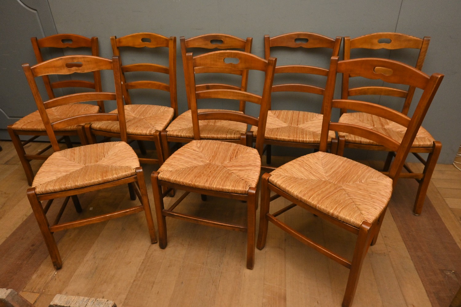 A SET OF EIGHT LADDERBACK DINING CHAIRS WITH RUSH SEATS (94H X 52W X 57D CM) (LEONARD JOEL DELIVERY SIZE: X-LARGE)
