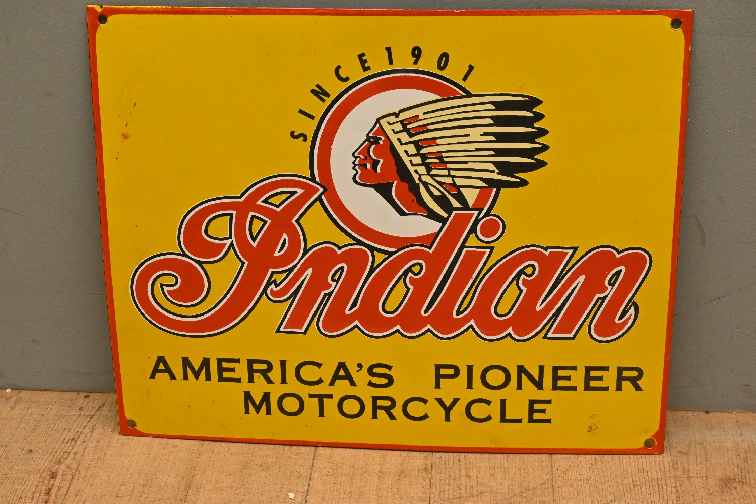 AN INDIAN MOTOCYCLE SIGN (40H X 50W CM) (LEONARD JOEL DELIVERY SIZE: LARGE)