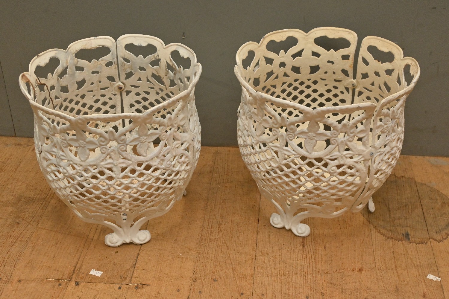 A PAIR OF CAST METAL PLANTERS (30H X 31D CM) (LEONARD JOEL DELIVERY SIZE: LARGE)