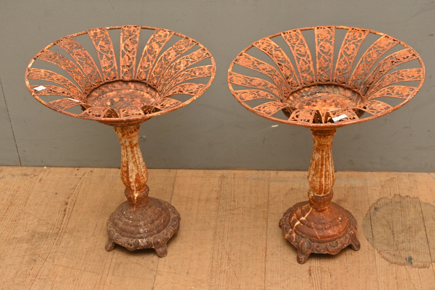 A PAIR OF CAST METAL PLANT STANDS (A/F) (40H X 34D CM) (LEONARD JOEL DELIVERY SIZE: LARGE)
