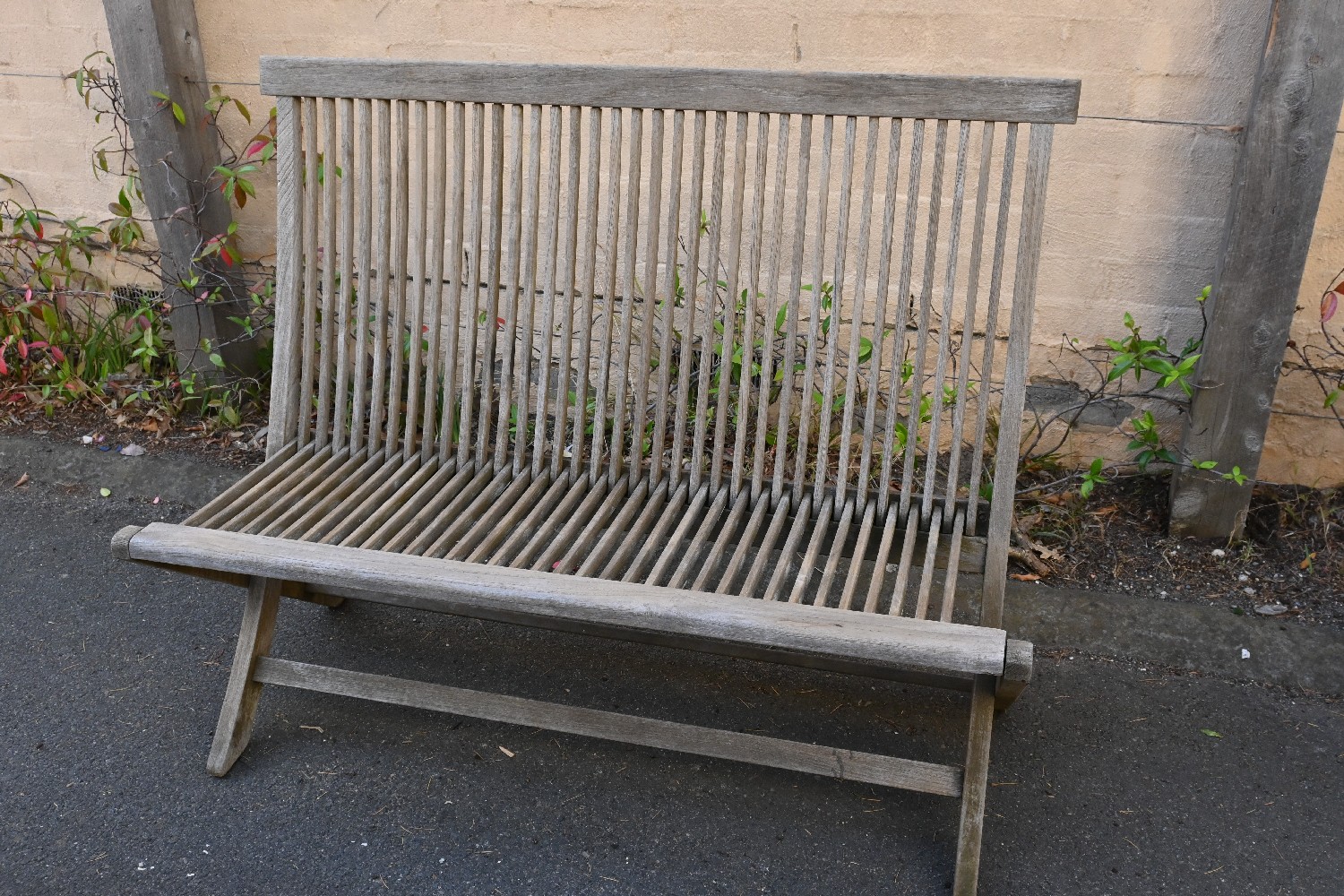 A TEAK GARDEN BENCH (A/F) (96H X 122W X 50D CM) (LEONARD JOEL DELIVERY SIZE: X-LARGE)