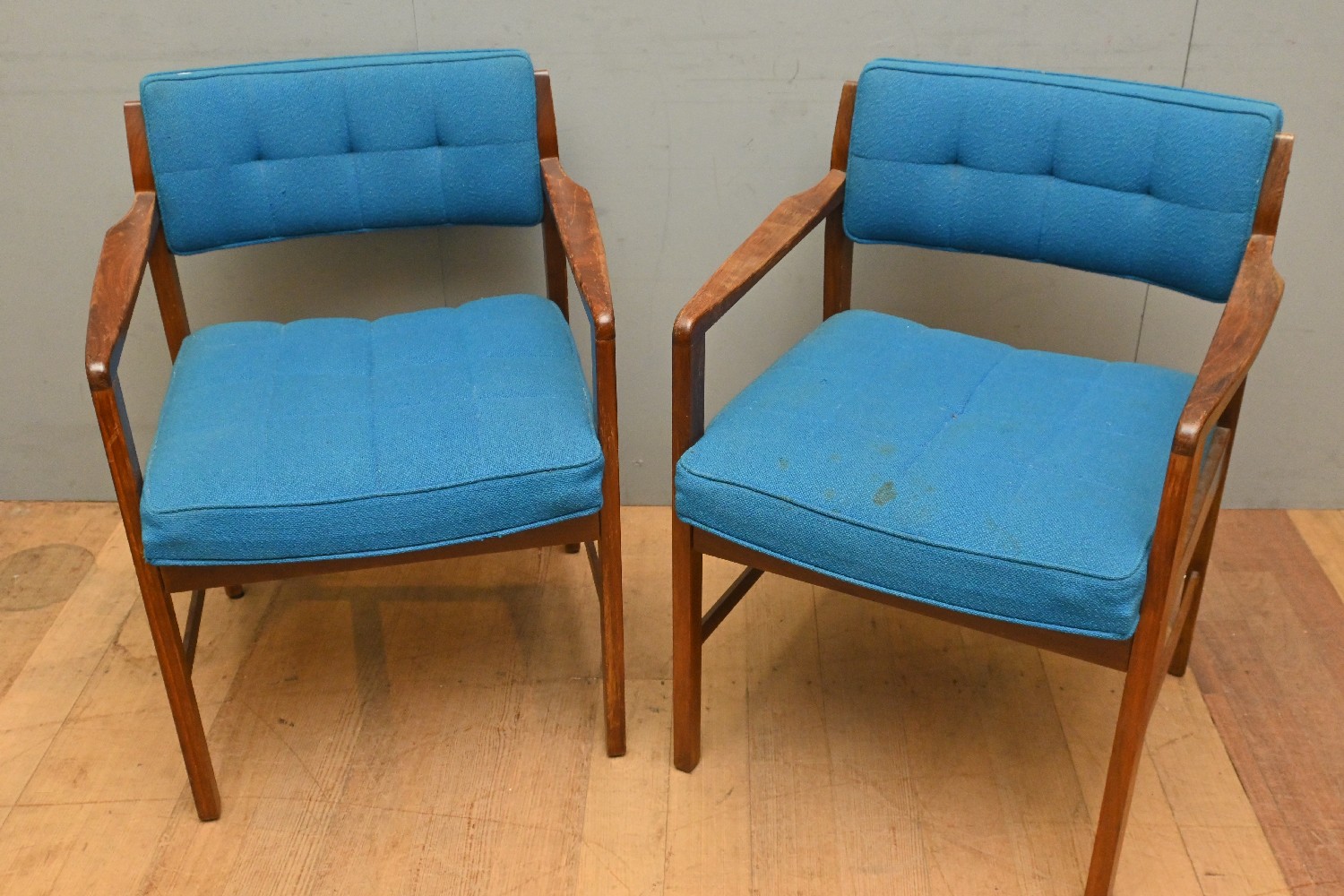 A PAIR OF MID-CENTURY ARMCHAIRS (A/F) (81H X 57W X 52D CM) (LEONARD JOEL DELIVERY SIZE: X-LARGE)