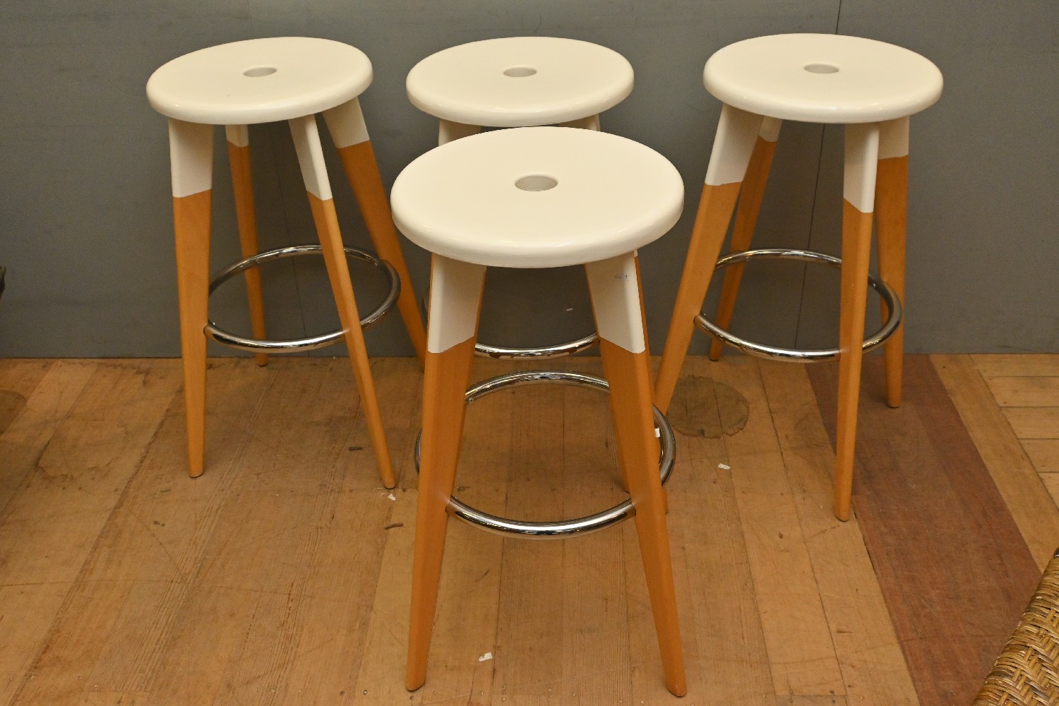A SET OF FOUR CONTEMPORARY COUNTER STOOLS IN THE STYLE OF TABOURET HAULT (76H X 58D CM) (LEONARD JOEL DELIVERY SIZE: X-LARGE)