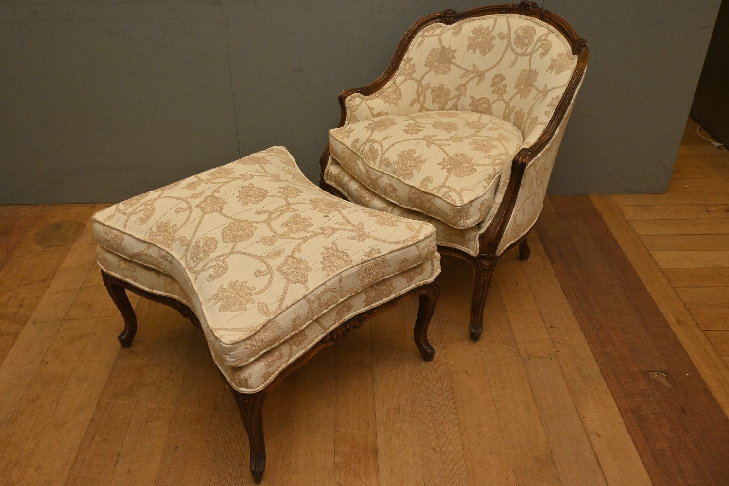 A FRENCH BERGERE AND OTTOMAN (82H X 72W X 56W CM) (LEONARD JOEL DELIVERY SIZE: LARGE)