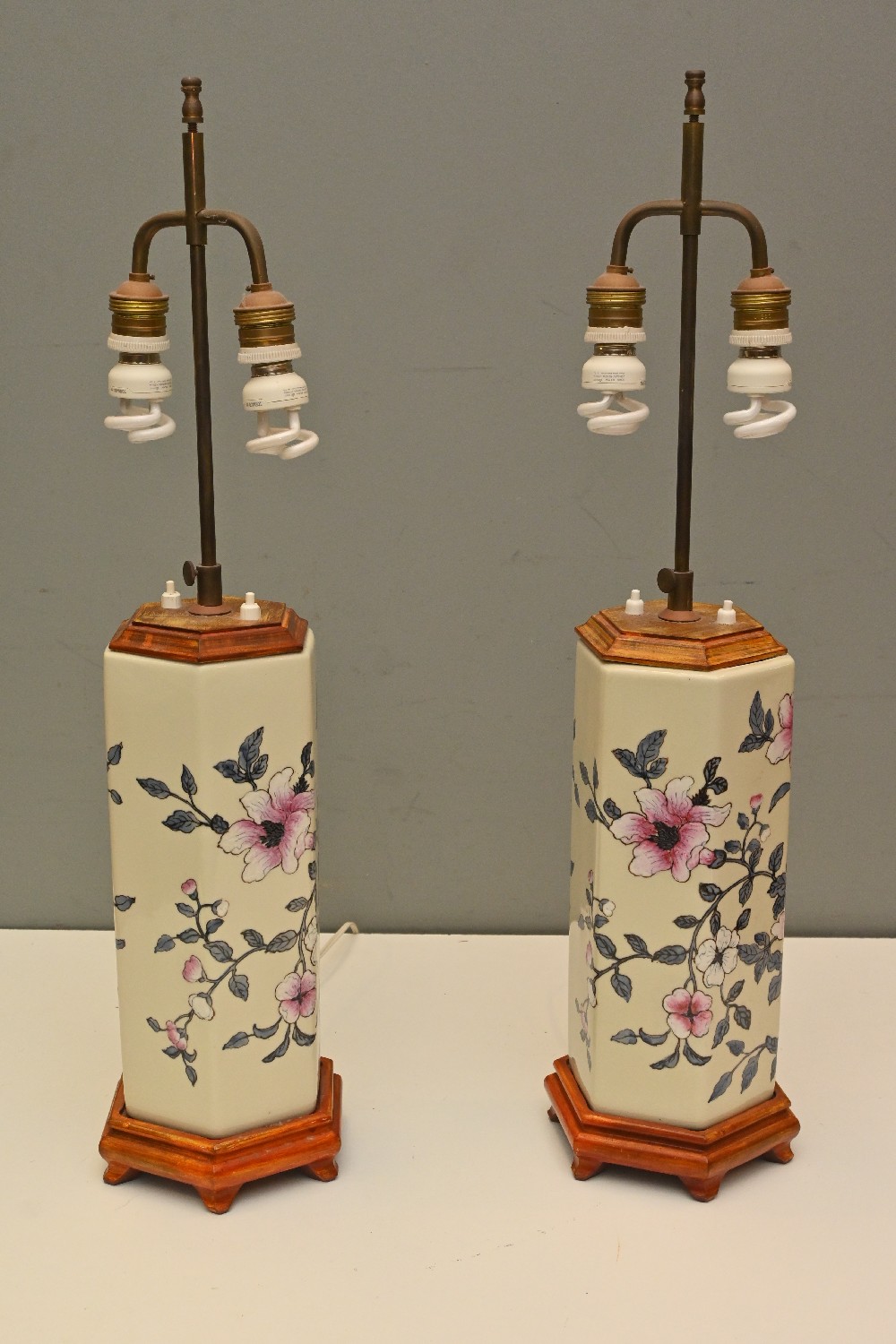 A PAIR OF CHINESE CERAMIC LAMPS (A/F) (72H CM) (LEONARD JOEL DELIVERY SIZE: LARGE)
