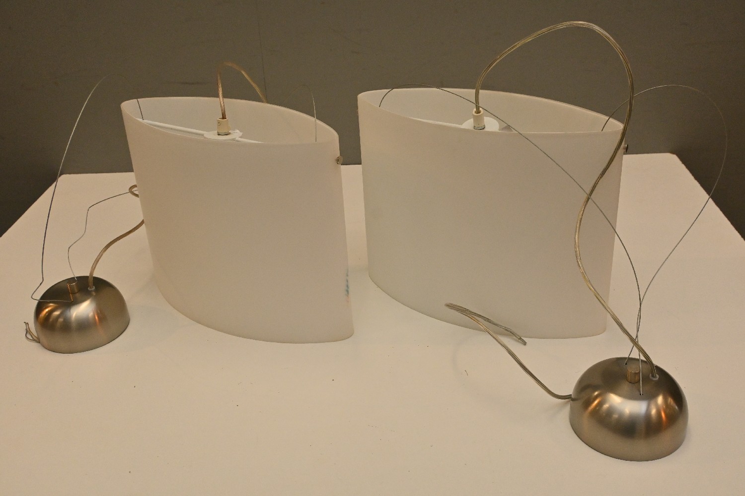A PAIR OF MURANO GLASS PENDANT "PATOS" LIGHTS BY EGOLUCE ITALY (A/F) (SHADE 29H X 35W X 14D CM) (LEONARD JOEL DELIVERY SIZE: LARGE)