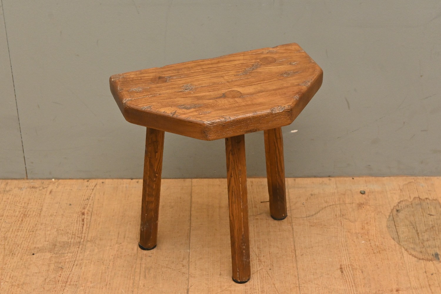 AN OAK FRENCH STYLE MILKING STOOL (40H X 38W X 24D CM) (LEONARD JOEL DELIVERY SIZE: MEDIUM)