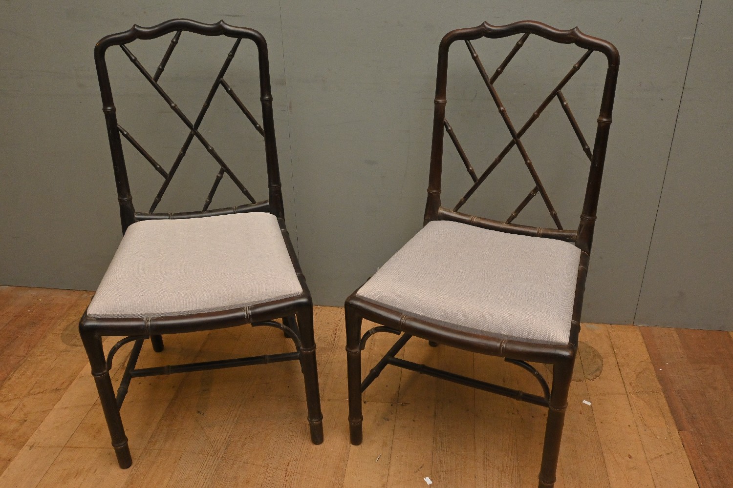 A PAIR OF FAUX BAMBOO ACCENT CHAIRS (100H X 52W X 58D CM) (LEONARD JOEL DELIVERY SIZE: LARGE)