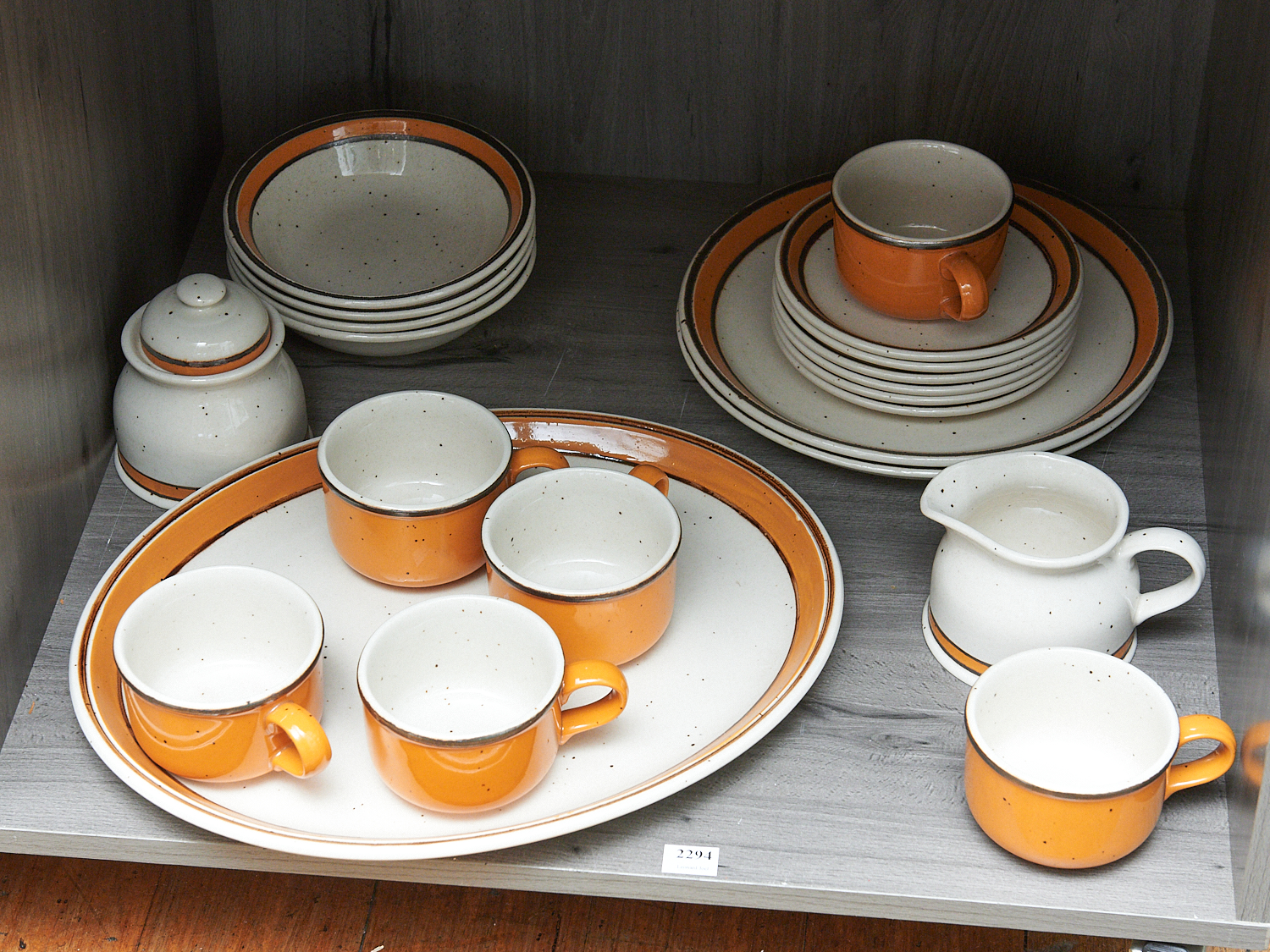 A JOHNSON BROTHERS 'PAPAYA' STONEWARE DINNER SETTING DIA.27CM, LEONARD JOEL LOCAL DELIVERY: MEDIUM