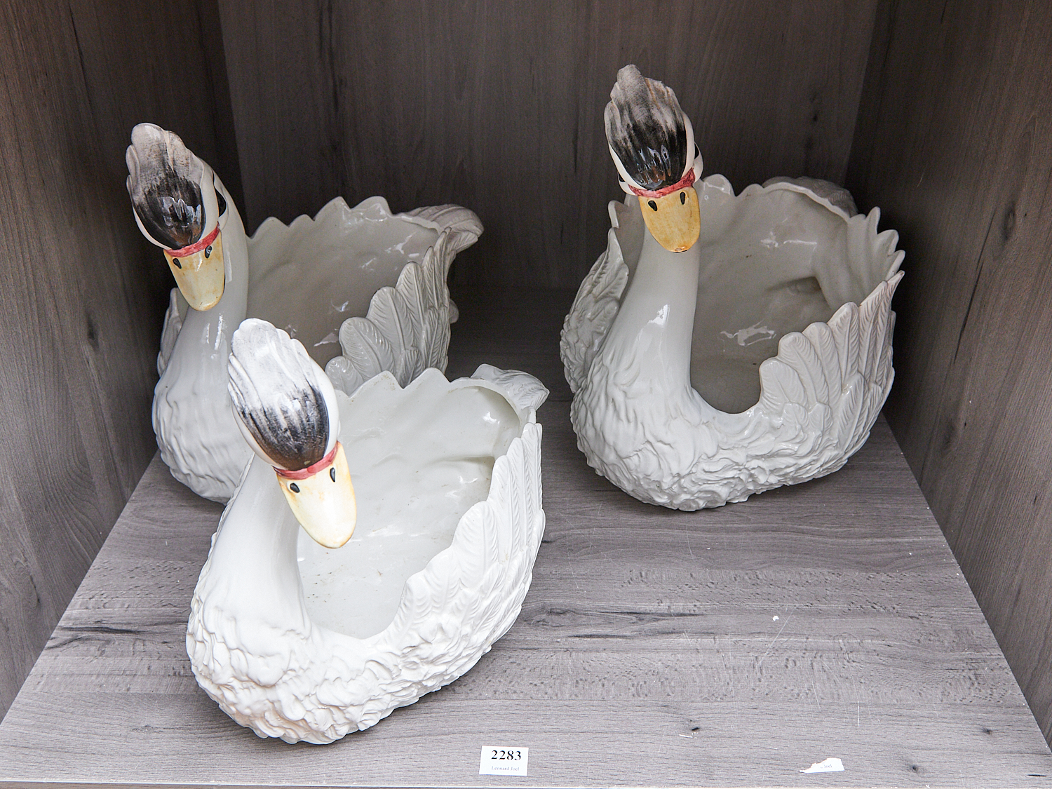 THREE ITALIAN SWAN-FORM PLANTERS (A/F) H.30CM (TALLEST), LEONARD JOEL LOCAL DELIVERY: MEDIUM