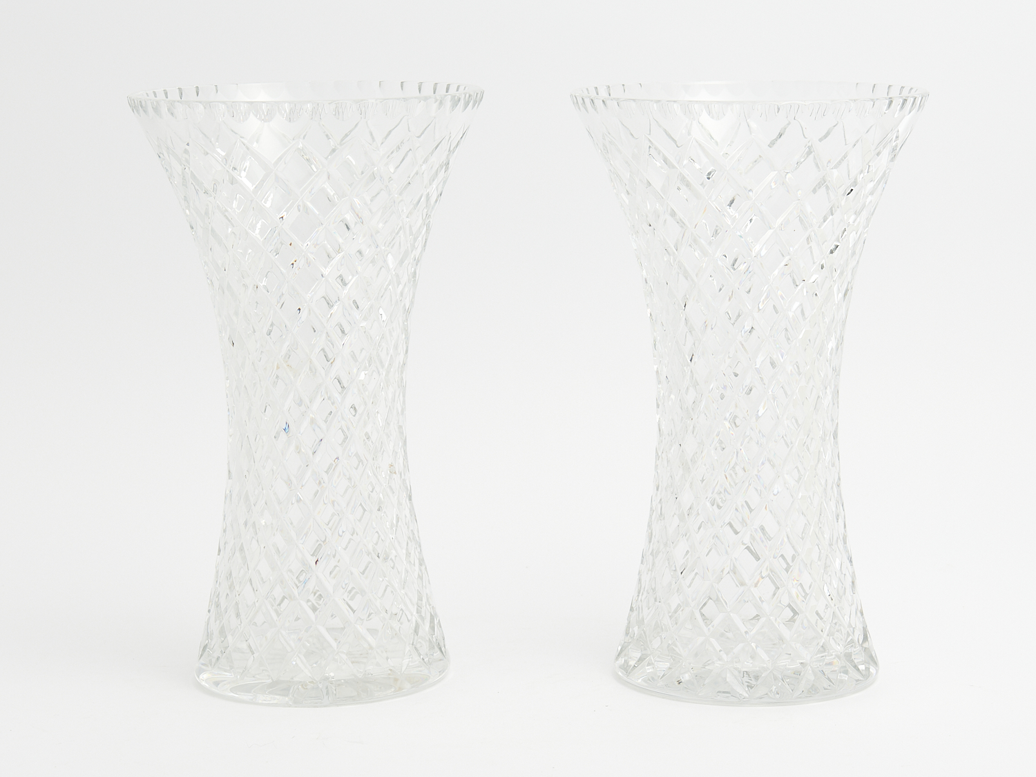 A PAIR OF CUT CRYSTAL VASES H.36CM, LEONARD JOEL LOCAL DELIVERY: MEDIUM