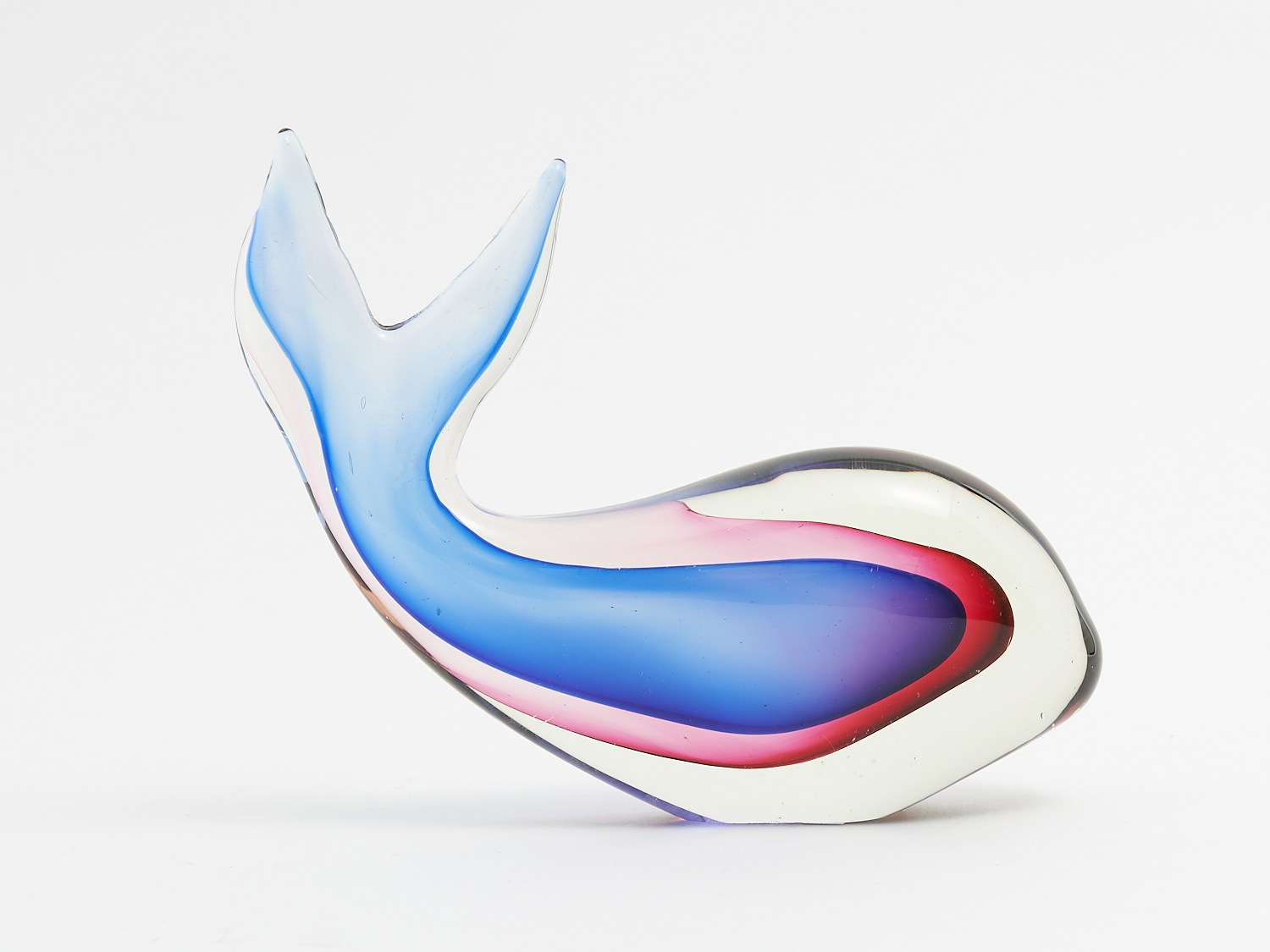 A SOMMERSO GLASS WHALE H.16CM, LEONARD JOEL LOCAL DELIVERY: SMALL