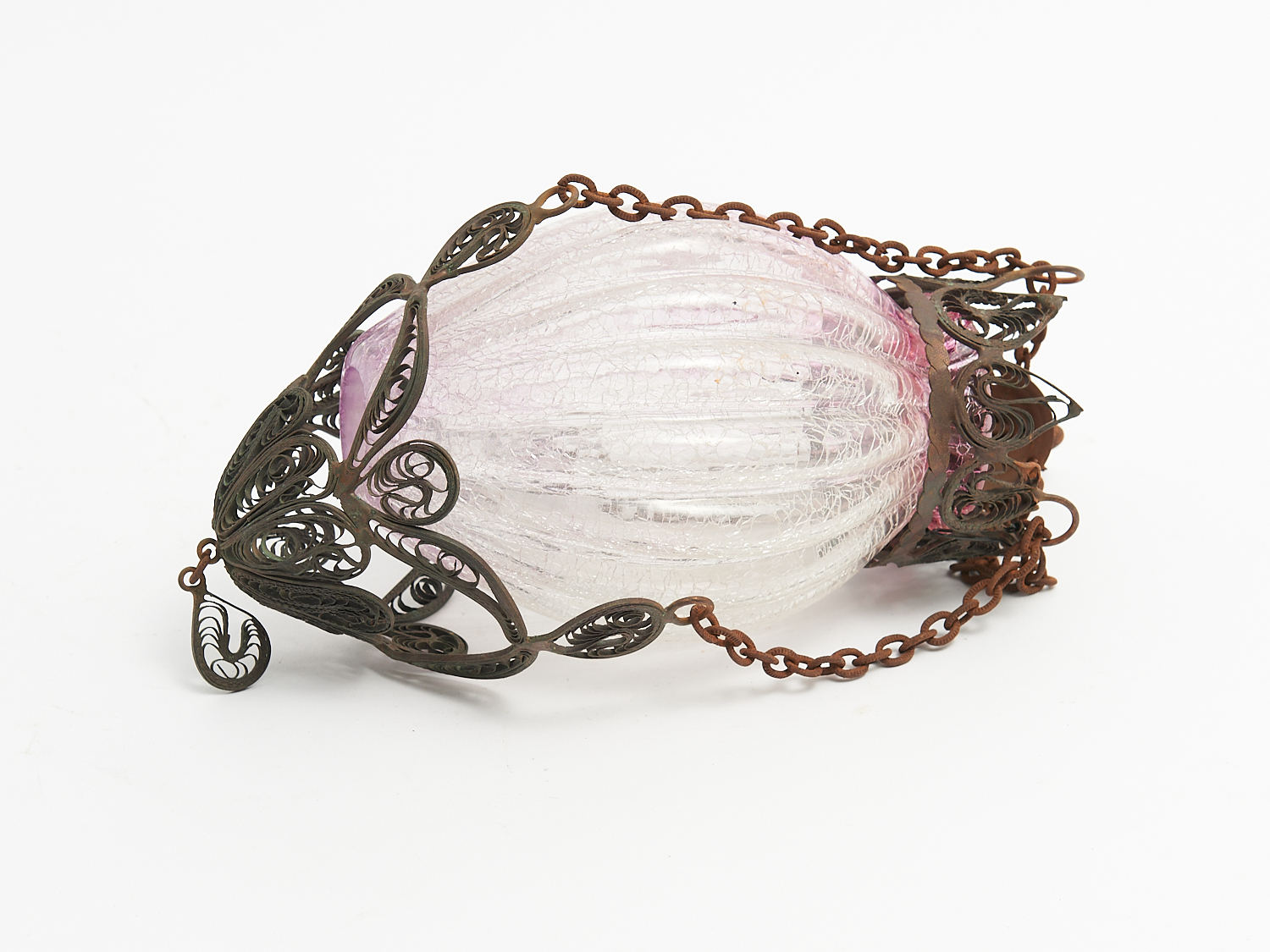 A MIDDLE-EASTERN HANGING LAMP WITH FILIGREE MOUNTS H.50CM (WITH CHAIN), LEONARD JOEL LOCAL DELIVERY: MEDIUM