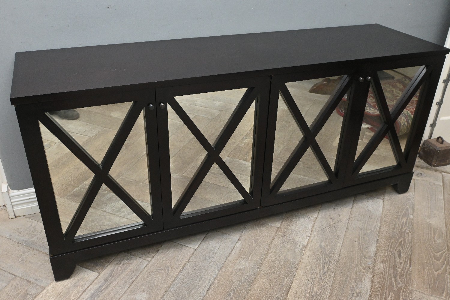 A FOUR DOOR MIRROR FRONT BUFFET FROM OLY STUDIOS SAN FRANCISCO (A/F) (81H X 183W X 51D CM) (PLEASE NOTE THIS HEAVY ITEM MUST BE REMOVED BY CARRIERS AT THE CUSTOMER'S EXPENSE. LEONARD JOEL STAFF CANNOT ASSIST CARRYING THIS ITEM) (X-LARGE ITEM)