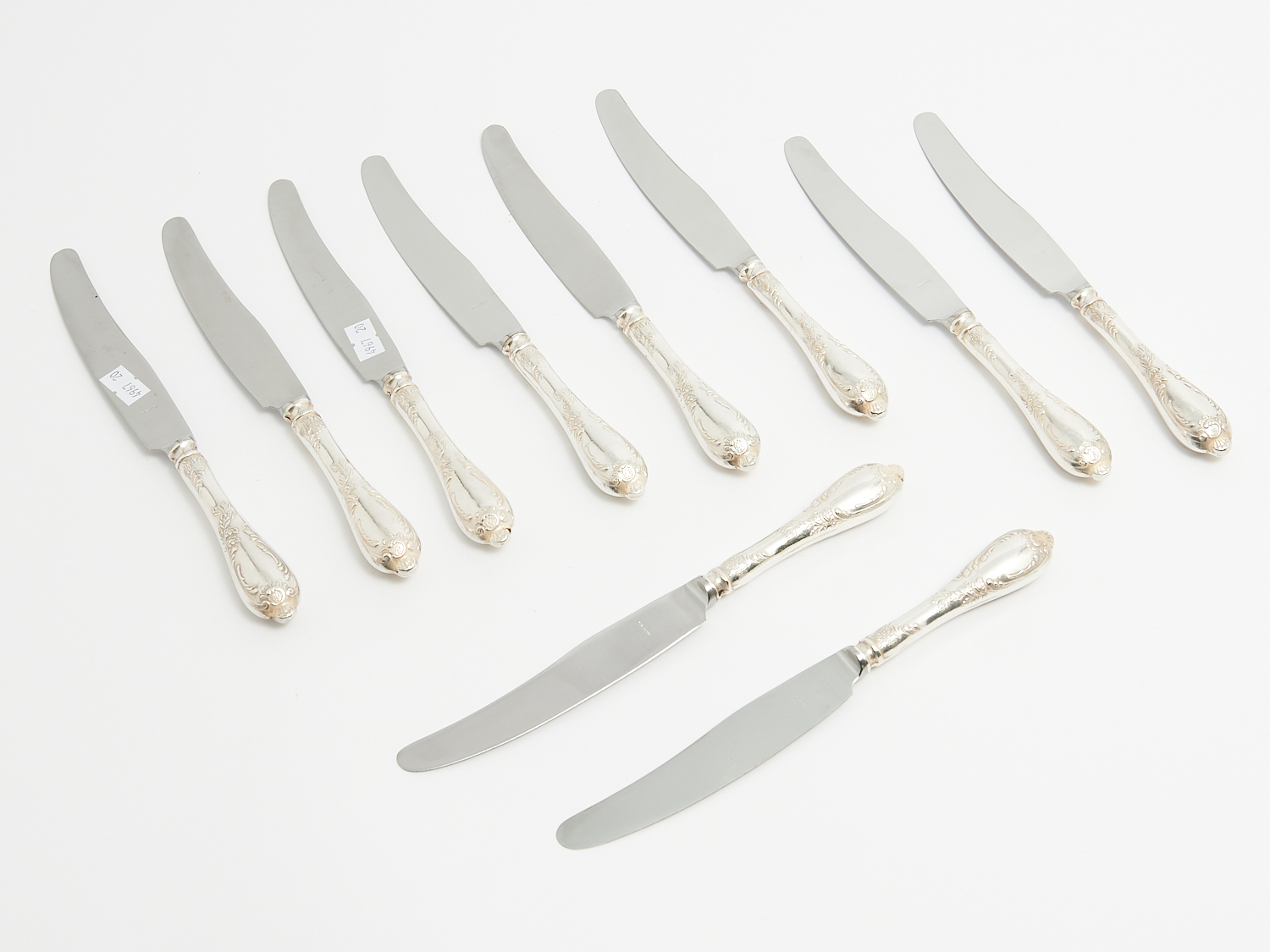 A SET OF TEN 19TH CENTURY FRENCH SILVER HANDLED STAINLESS STEEL BLADE DINNER KNIVES L.24.5CM, LEONARD JOEL LOCAL DELIVERY: SMALL