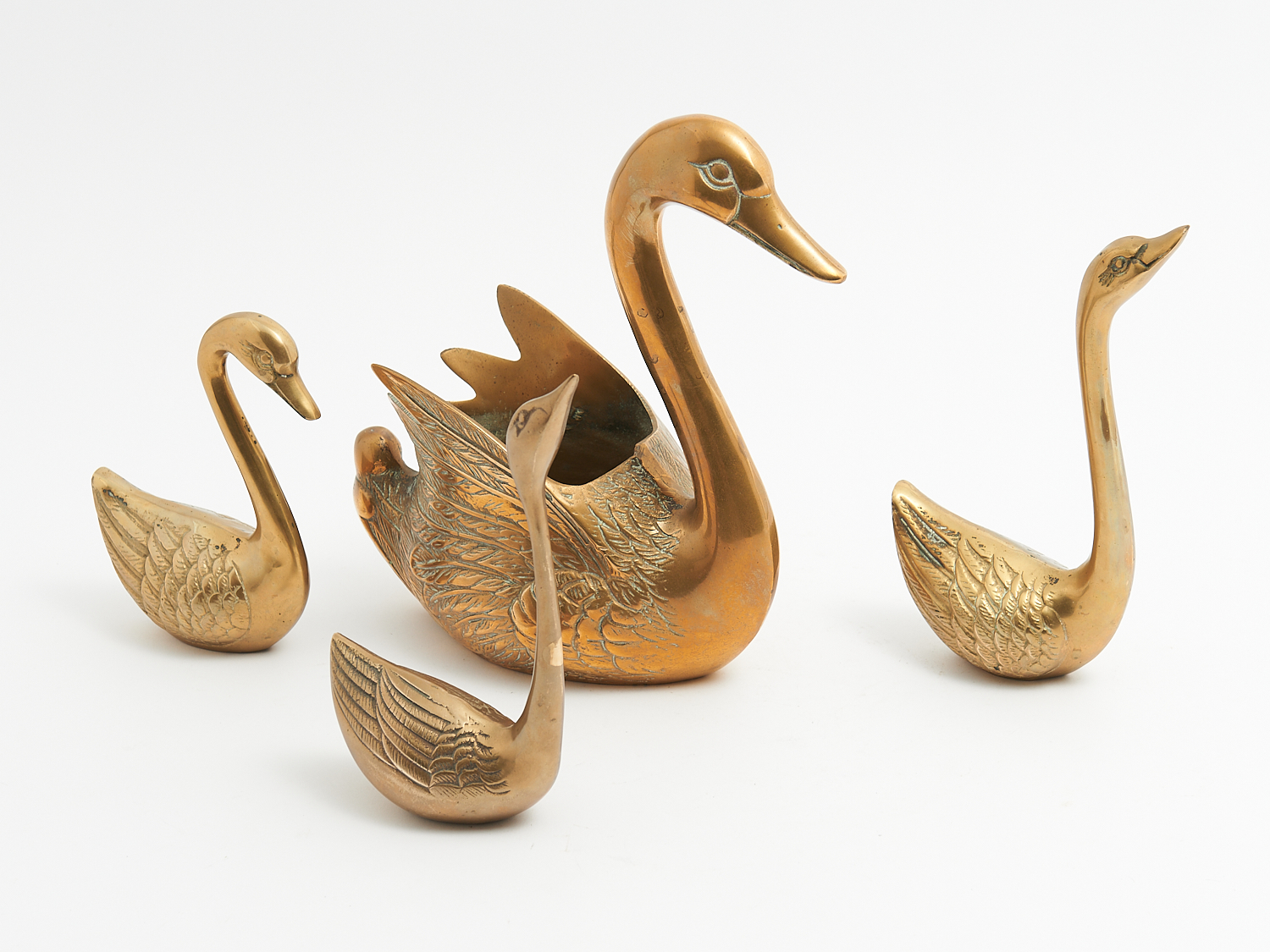 FOUR VINTAGE SOLID BRASS SWANS INCLUDING A PLANTER H.26.5CM, LEONARD JOEL LOCAL DELIVERY: SMALL