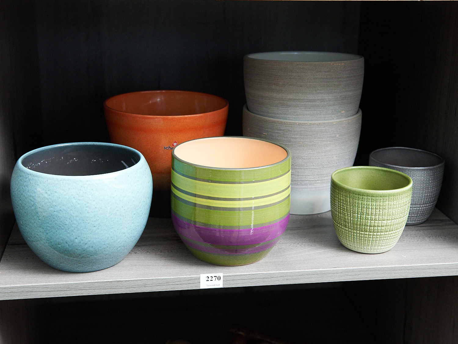 SEVEN VINTAGE GERMAN SCHEURICH GLAZED PLANTERS H.14.5CM (TALLEST), LEONARD JOEL LOCAL DELIVERY: MEDIUM