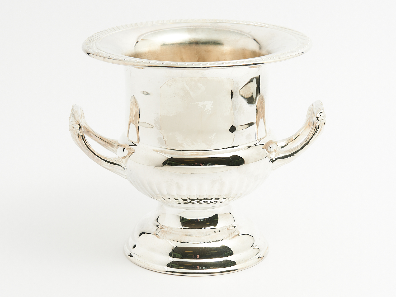 A VINTAGE ENGLISH TWO HANDLE SILVER PLATE ICE/CHAMPAGNE BUCKET H.22CM, LEONARD JOEL LOCAL DELIVERY: MEDIUM