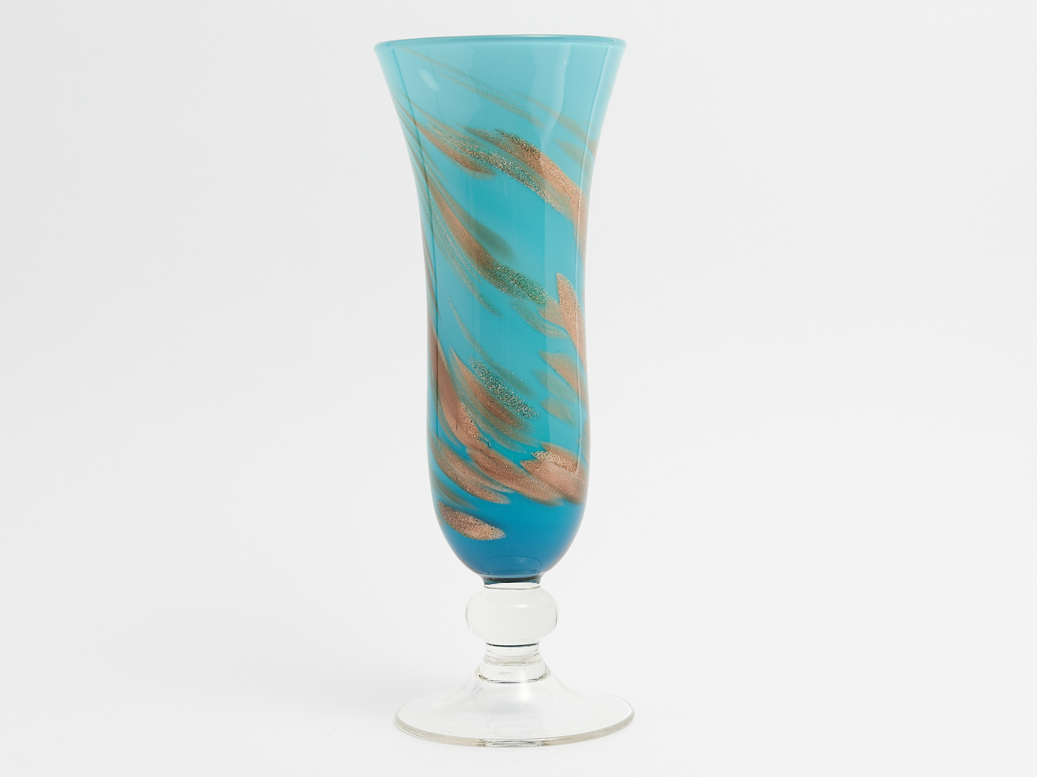 A LARGE MURANO GLASS VASE IN AQUA TONES WITH GOLD INCLUSIONS H.34.5CM, LEONARD JOEL LOCAL DELIVERY: MEDIUM