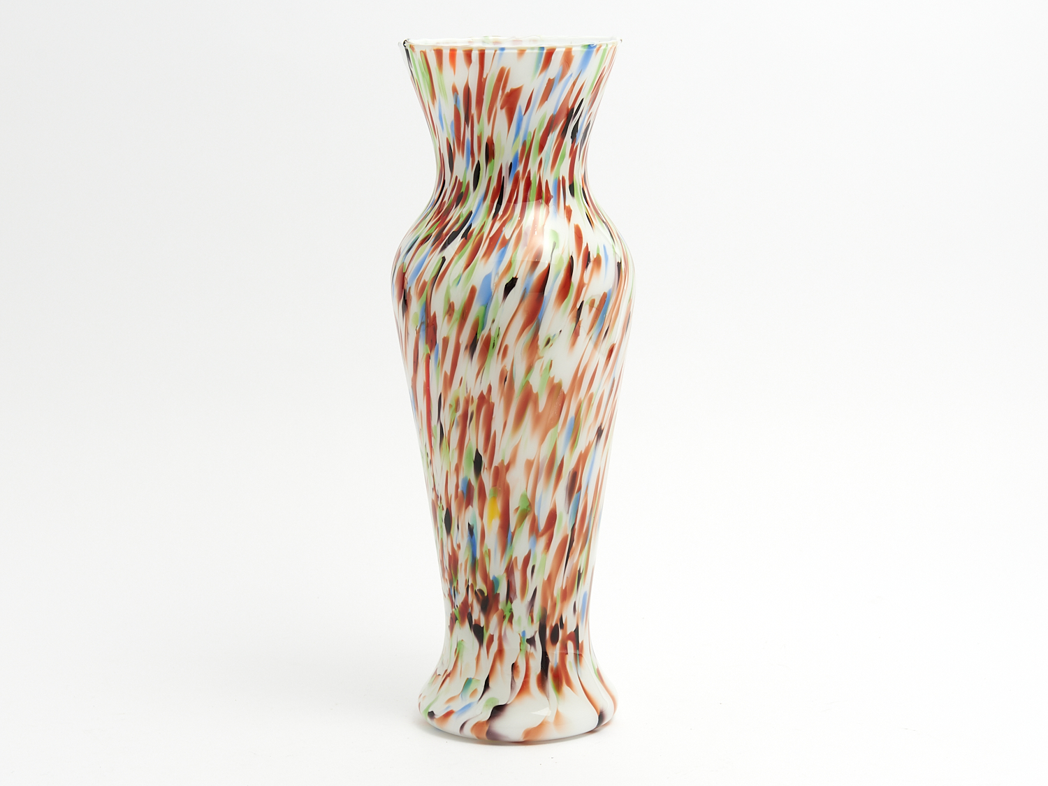 A LARGE 1960S TUTTI-FRUTTI GLASS VASE WITH ORIGINAL FOIL LABEL H.42.5CM, LEONARD JOEL LOCAL DELIVERY: MEDIUM