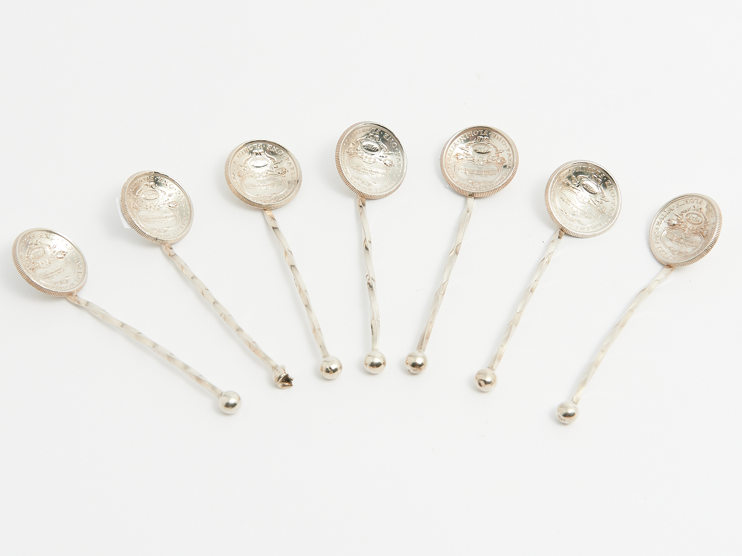 A SET OF SEVEN AUSTRALIAN 1927 PARLIAMENT HOUSE FLORIN SILVER SPOONS (A/F) 114G, L.10CM, LEONARD JOEL LOCAL DELIVERY: SMALL