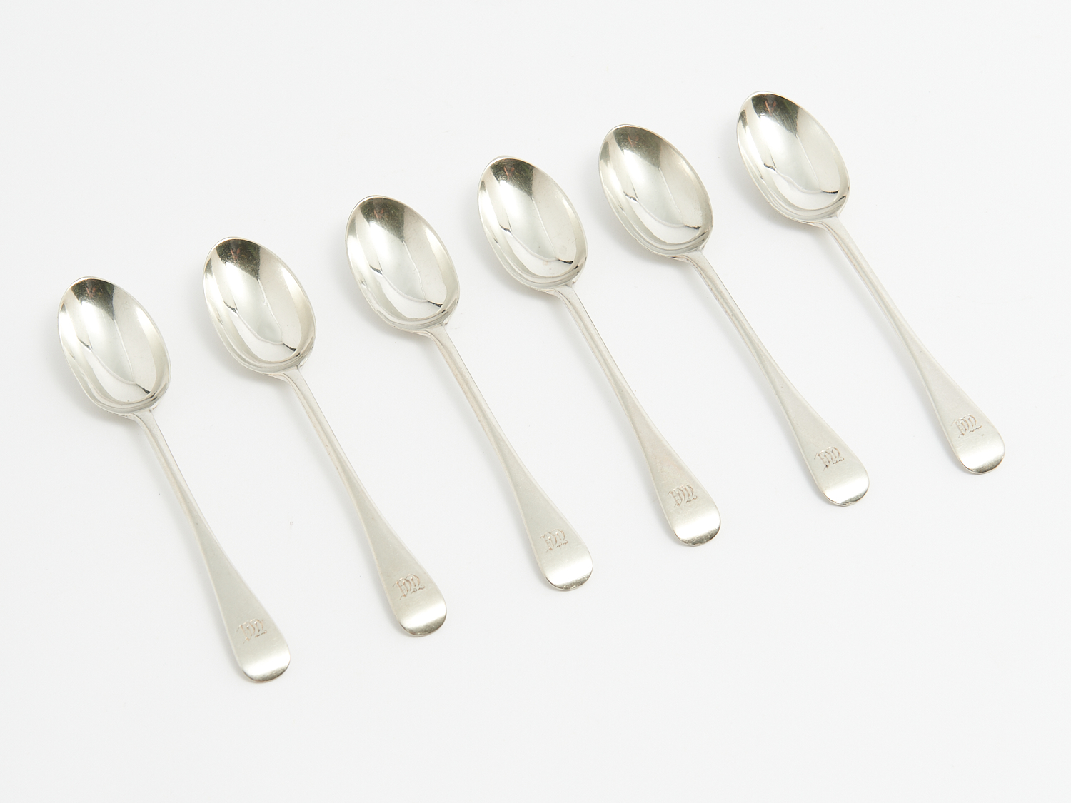 A SET OF SIX ENGLISH HALLMARKED STERLING SILVER TEASPOONS 124G, L.14CM, LEONARD JOEL LOCAL DELIVERY: SMALL