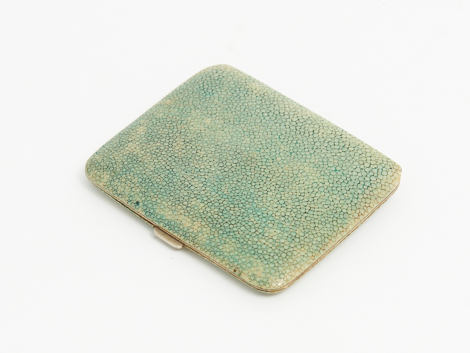 AN ART NOUVEAU SHAGREEN SHARK SKIN AND SILVER CARD CASE H.9CM, LEONARD JOEL LOCAL DELIVERY: SMALL