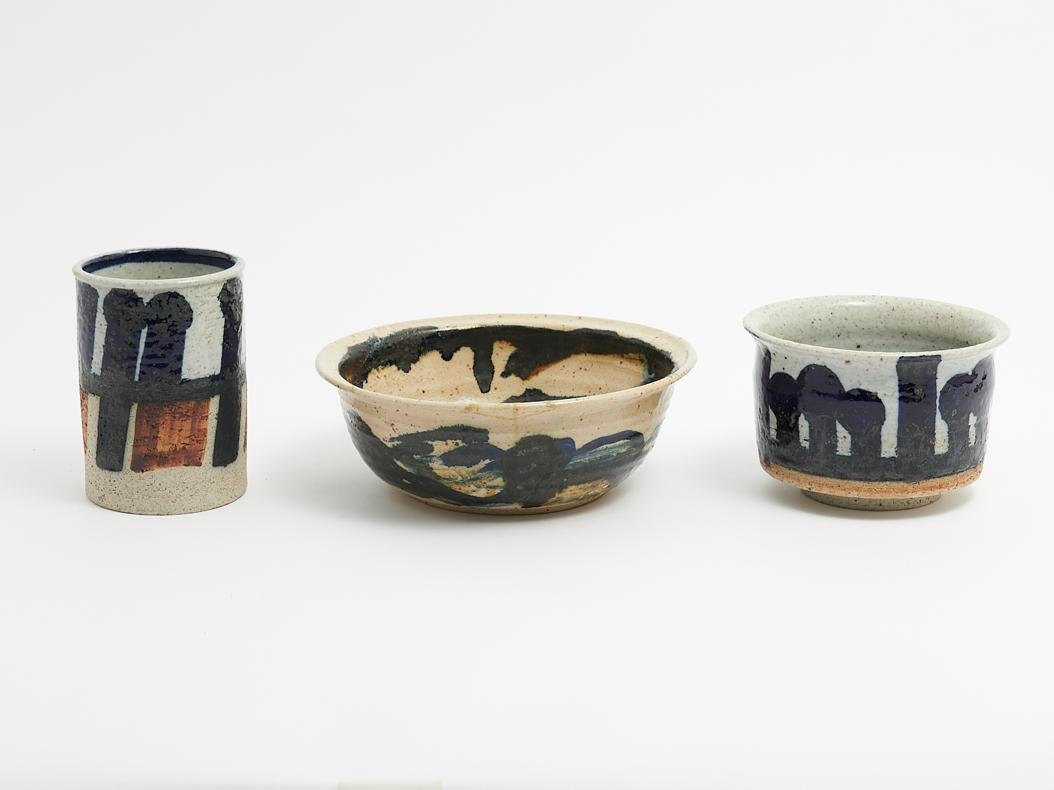 A GROUP OF THREE RORSTRAND ATELJE STONEWARE PIECES WITH BLUE DECORATION DIA.24.5CM (LARGEST), LEONARD JOEL LOCAL DELIVERY: SMALL