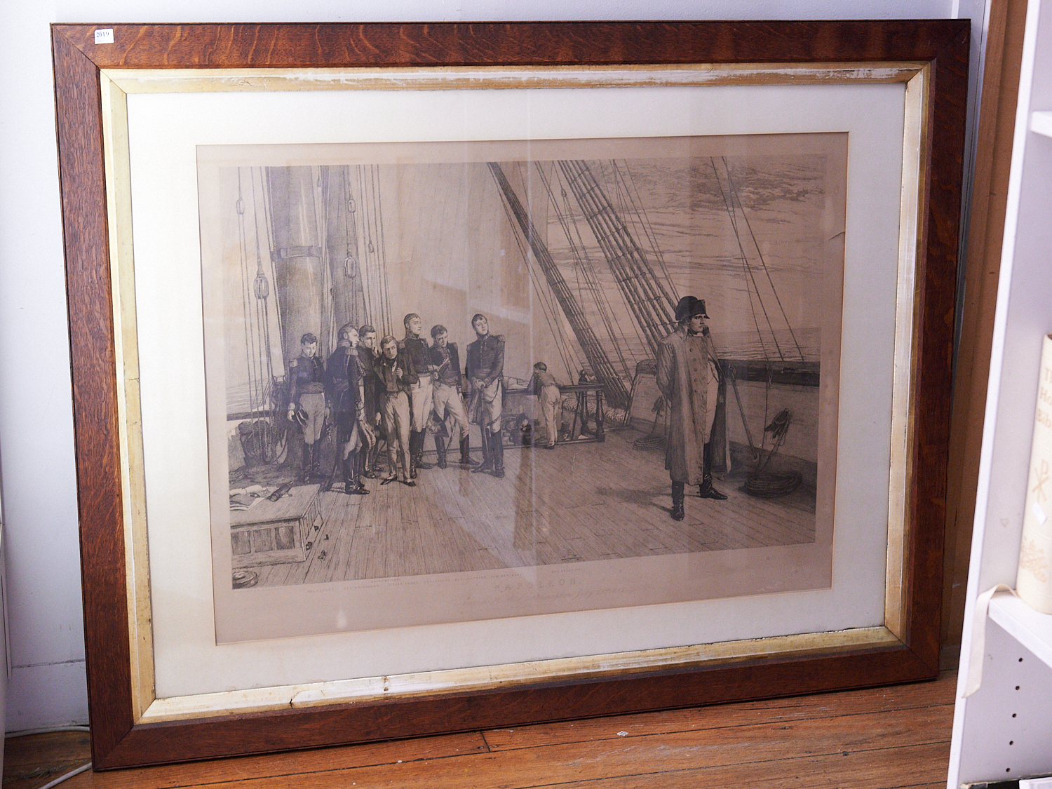 A LARGE OAK FRAMED 19TH CENTURY ENGRAVING OF NAPOLEON (A/F) 103 X 131CM, LEONARD JOEL DELIVERY SIZE: LARGE