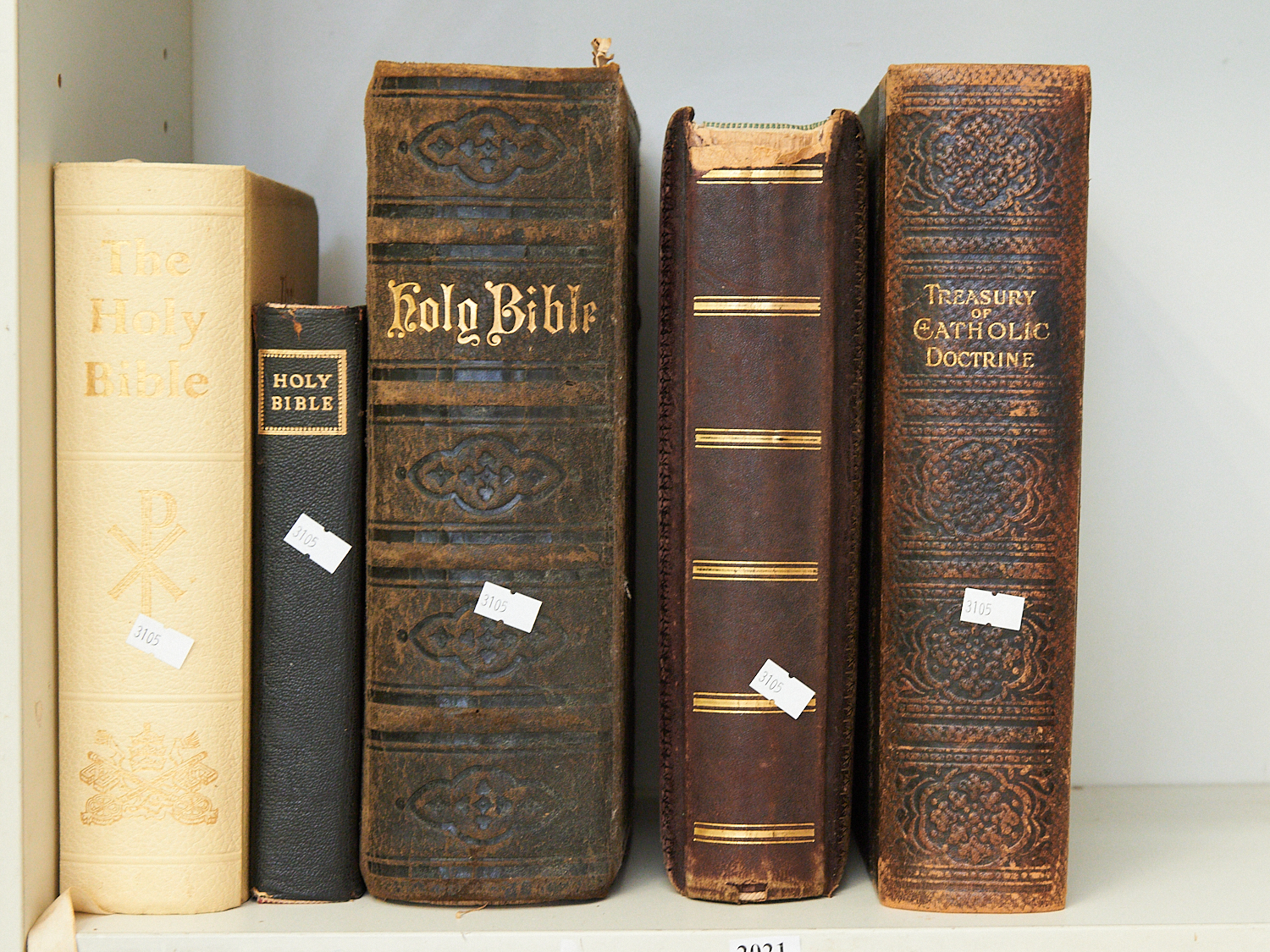 THREE ANTIQUE BIBLES, AN ALBUM, AND TREASURY OF CATHOLIC DOCTRINE, LEONARD JOEL DELIVERY SIZE: MEDIUM