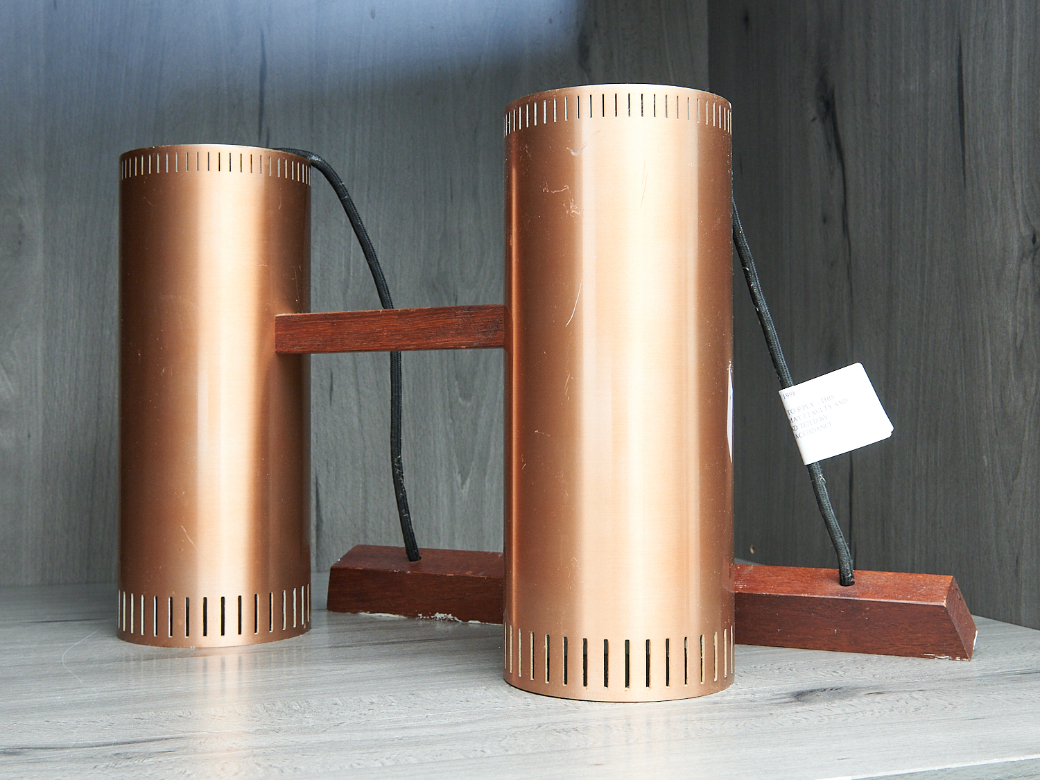 A DANISH WOOD AND METAL DOUBLE PENDANT LIGHT H.57CM, LEONARD JOEL LOCAL DELIVERY: SMALL