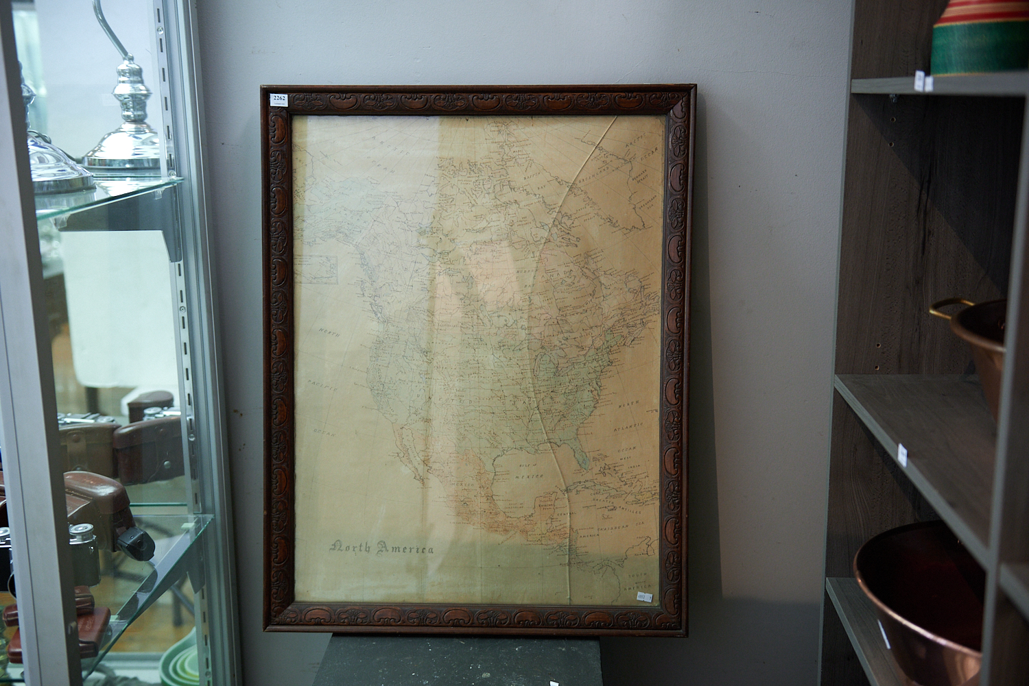 A FRAMED HAND-DRAWN MAP OF NORTH AMERICA, BY RUTH TROTTMAN, 1901, PROVENANCE TO VERSO, (A/F) H.81 X W.63CM, LEONARD JOEL LOCAL DELIVERY: MEDIUM