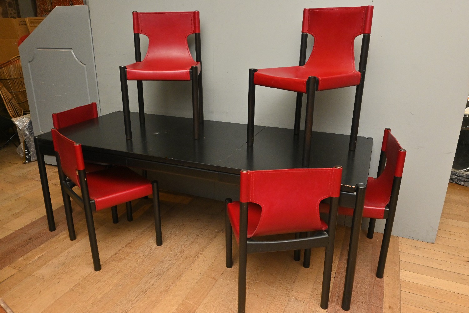 A FLER SEVEN PIECE EXTENSION DINING SETTING (A/F) (73H X EXTENDED WIDTH 214 X UNEXTENDED WIDTH 153 X 91D CM) (PLEASE NOTE THIS HEAVY ITEM MUST BE REMOVED BY CARRIERS AT THE CUSTOMER'S EXPENSE. LEONARD JOEL STAFF CANNOT ASSIST CARRYING THIS ITEM) (X-LARGE ITEM)