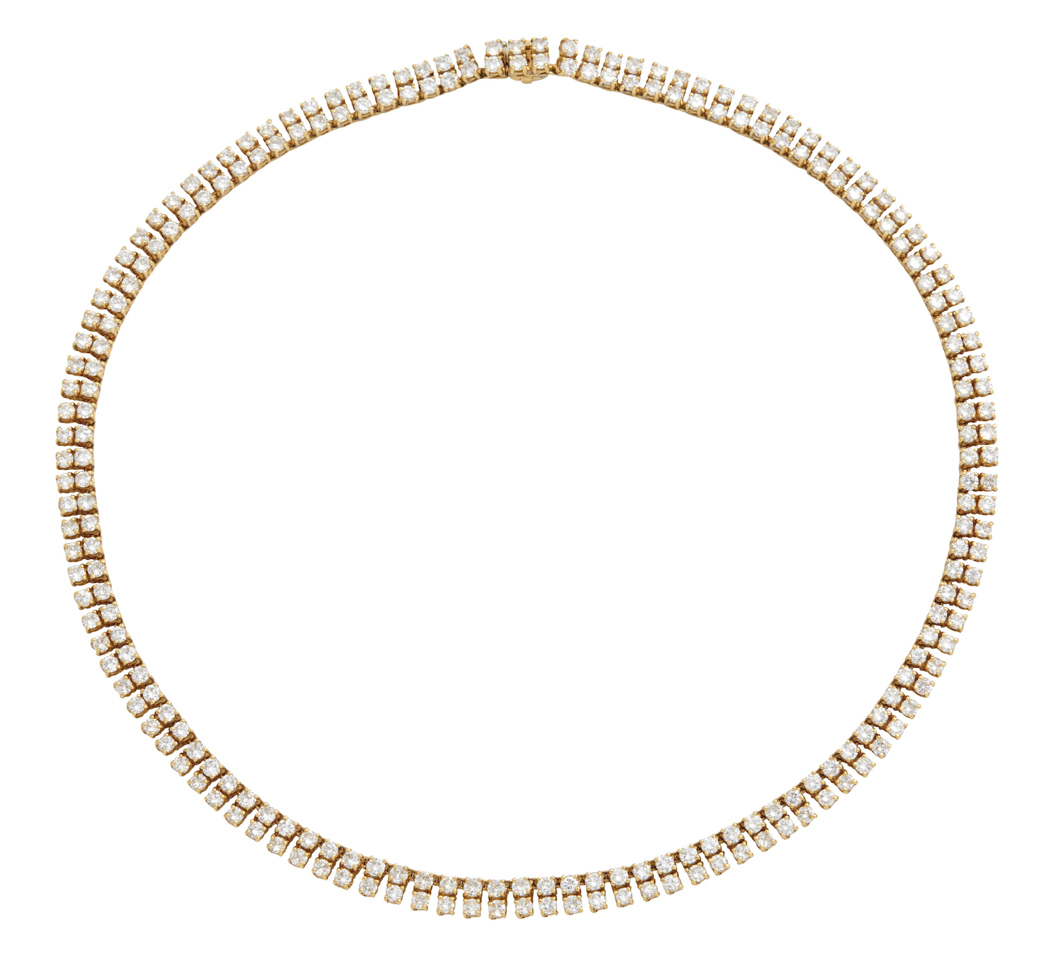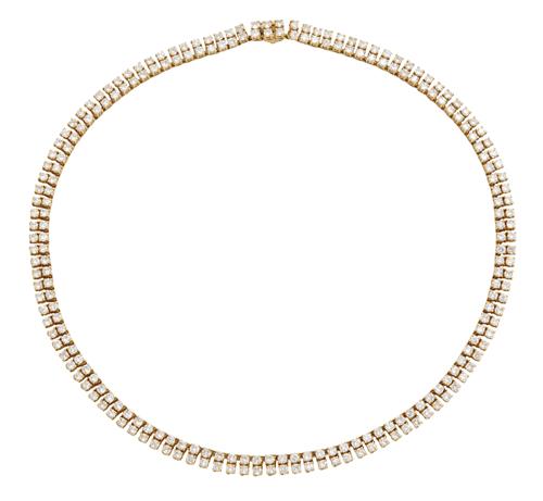 Comprising a double row of claw-set brilliant-cut diamonds together weighing approximately 11.50 carats, completed by a concealed tongue and groove clasp, length approximately 400mm, gross weight approximately 31.5 grams.