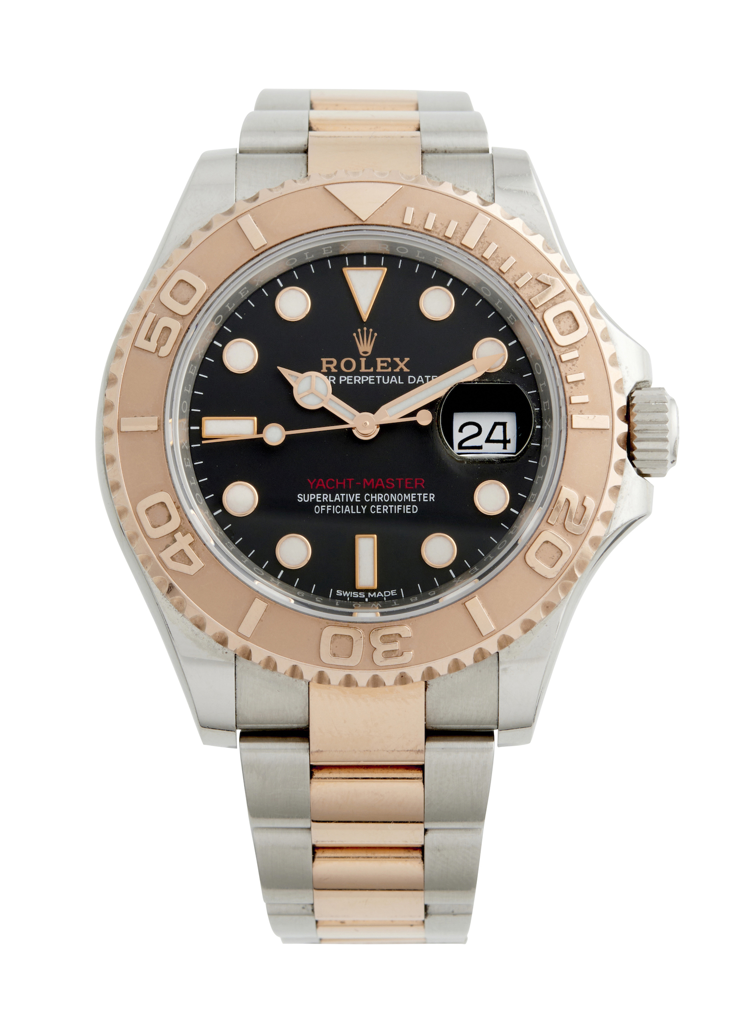 Closure: Rolex 18ct pink gold and stainless steel Oyster bracelet and folding clasp, one bracelet pin deficient