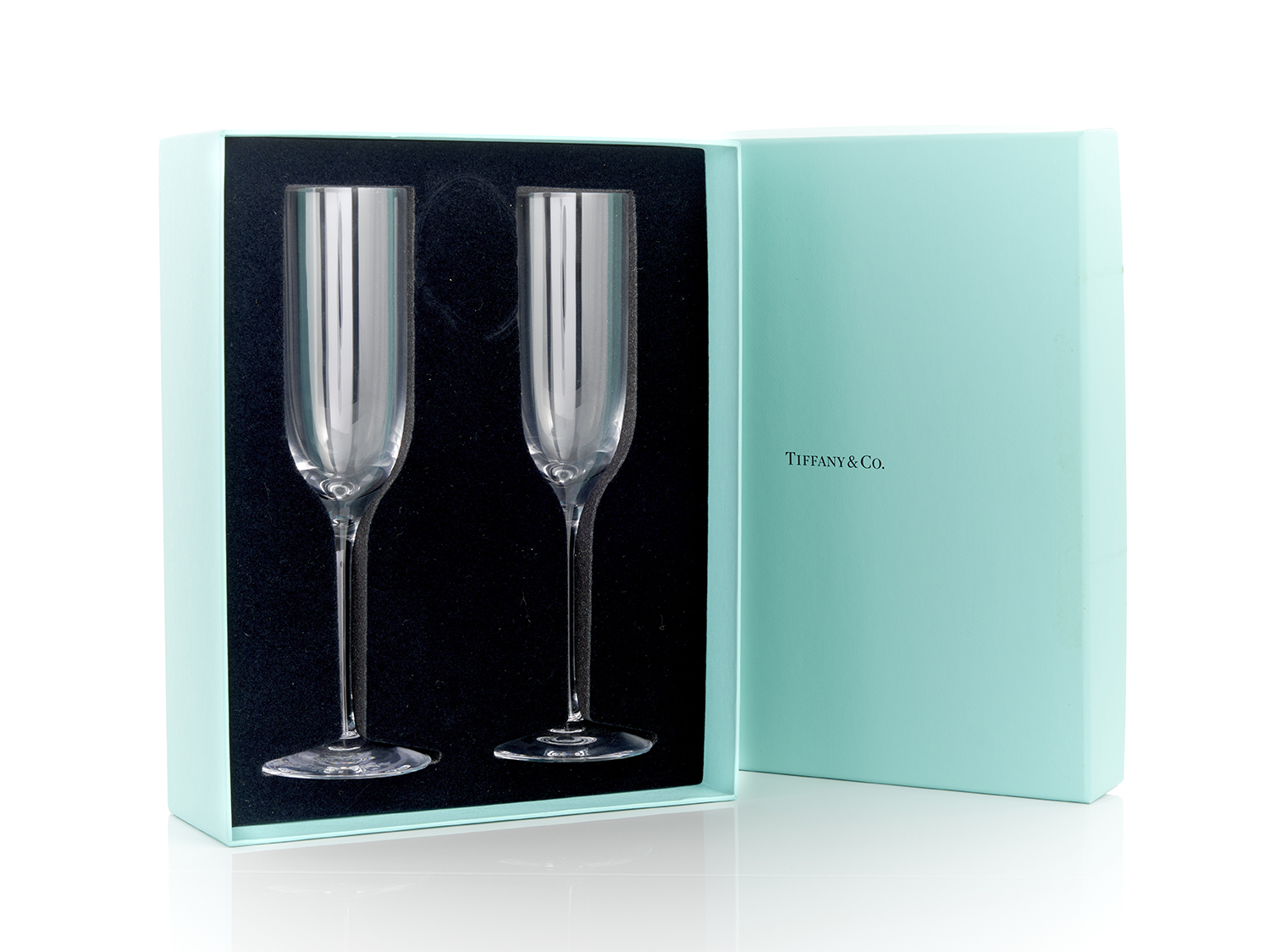 TIFFANY & CO, A APAIR OF CHAMPAGNE FLUTES, BOXED WITH RIBBON