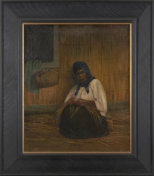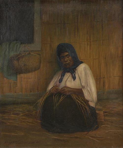 Maori Woman Weaving With Kete c.1910