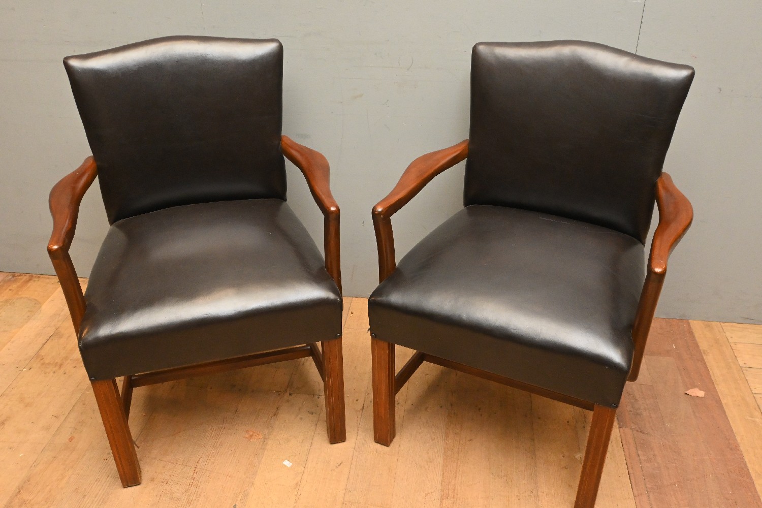 A PAIR OF BROWN LEATHER ARMCHAIRS ATTRIBUTED TO DARIO ZOUREFF (A/F) (85H X 62W X 60D CM) (LEONARD JOEL DELIVERY SIZE: LARGE)