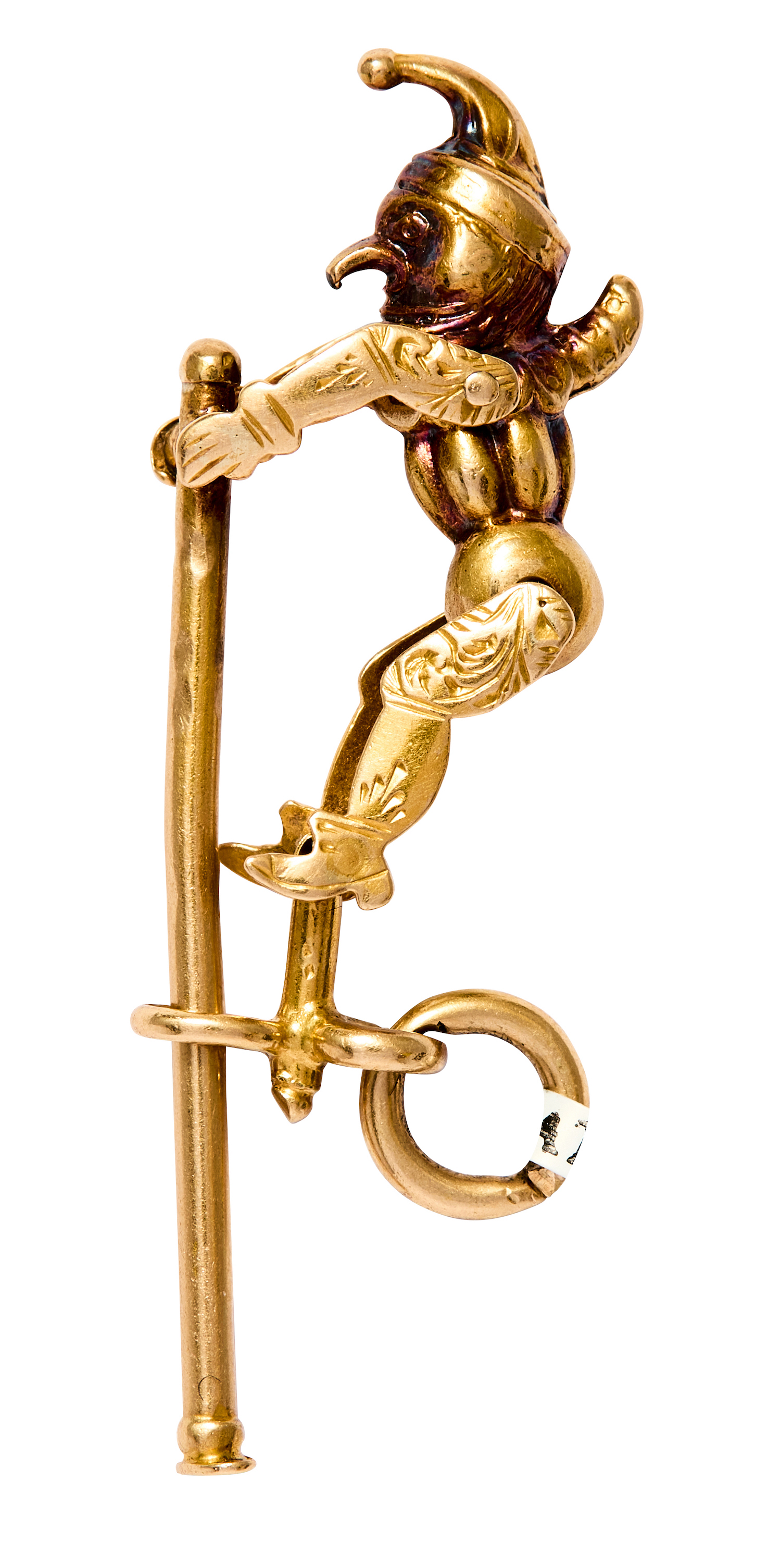 Modelled as Punch, articulated to climb up and down a pole, engraved details throughout, extended length 45mm, total gross weight approximately 2 grams.