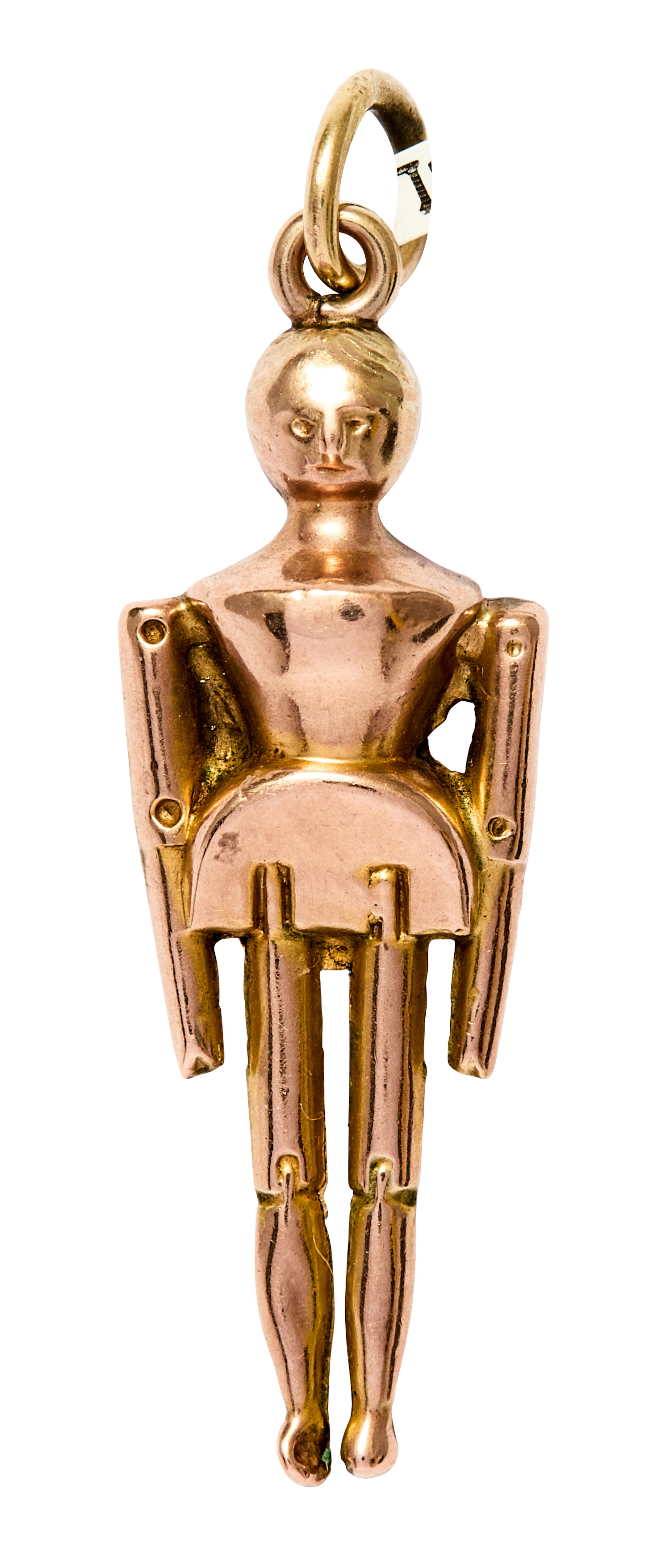 Modelled as a peg doll, 9ct gold, length 30mm, total gross weight approximately 1 gram.