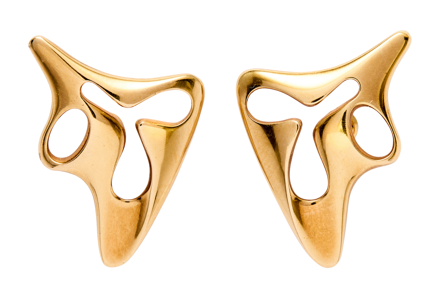 Of abstract design, 18ct gold, length 27mm, width 19mm, screw back fittings, total gross weight approximately 9 grams, maker's marks, reference 1119.