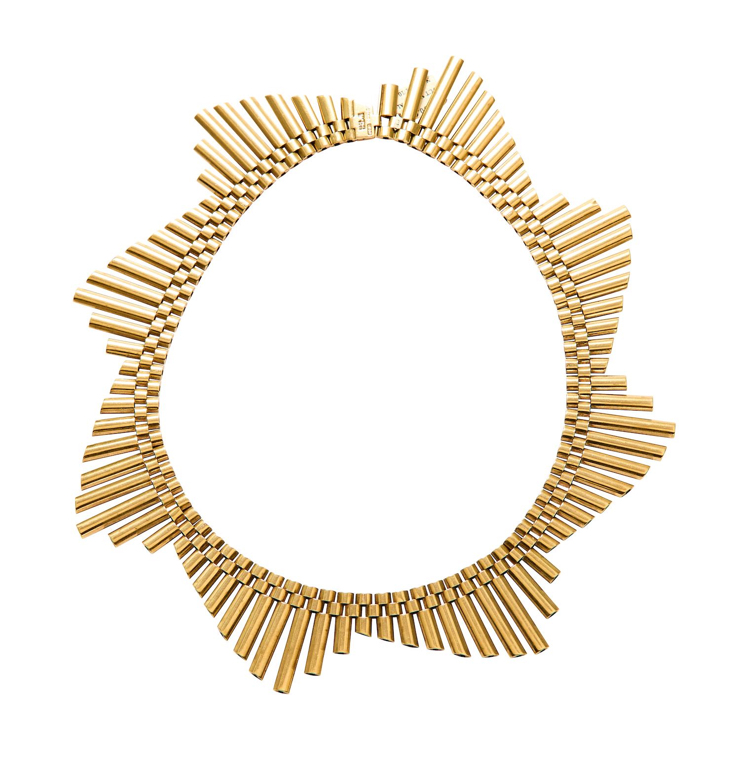 Modelled as an undulating collar composed of articulated hollow links, the top of escalier design, the reverse half round, inner circumference 390mm, total gross weight approximately 61 grams, British assay marks for Birmingham, 1978, maker's mark, JG&S.